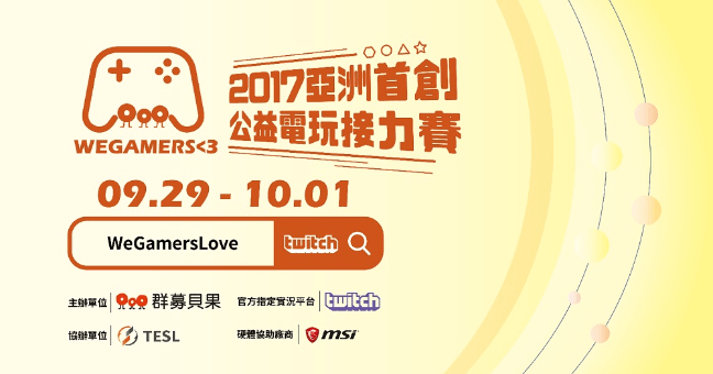 玩遊戲做愛心,公益電玩接力賽WeGamersLove月底登場