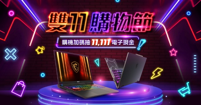 微星雙11購物節活動開跑,效能筆電享萬元折扣、購機加碼抽$11,111電子現金