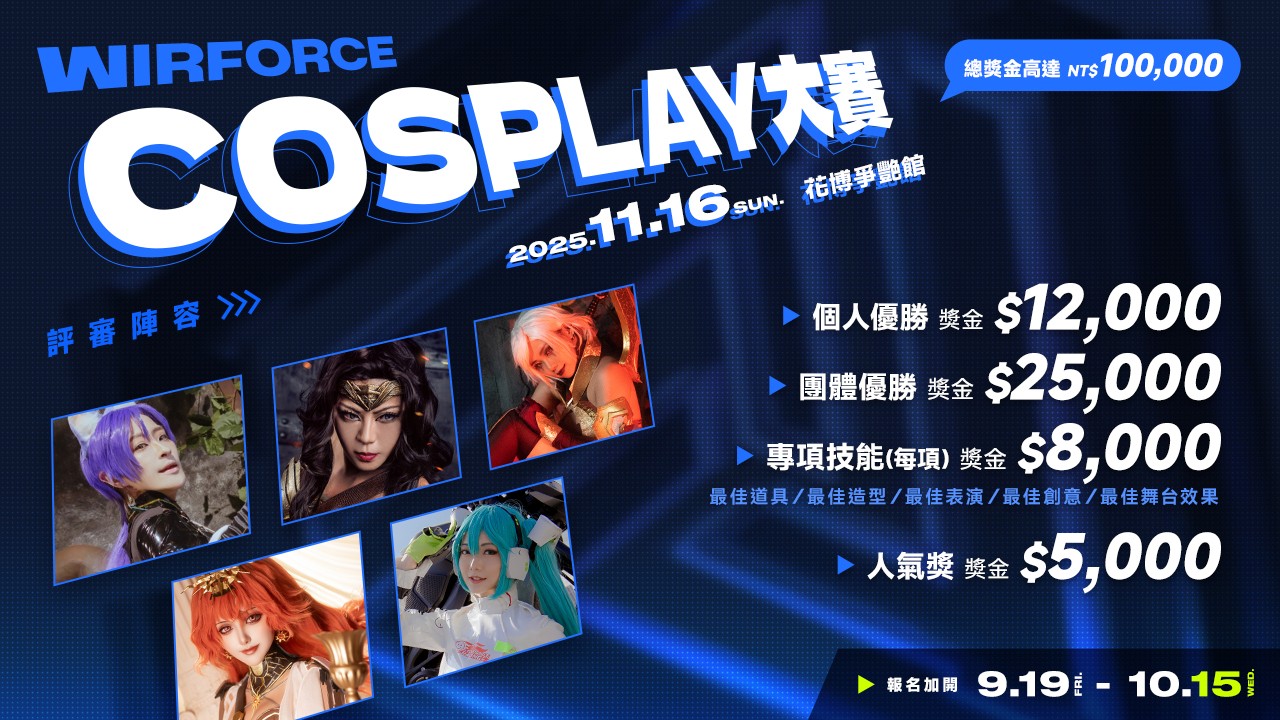 總獎金十萬!2025 WirForce Cosplay大賽 初選報名開放中!