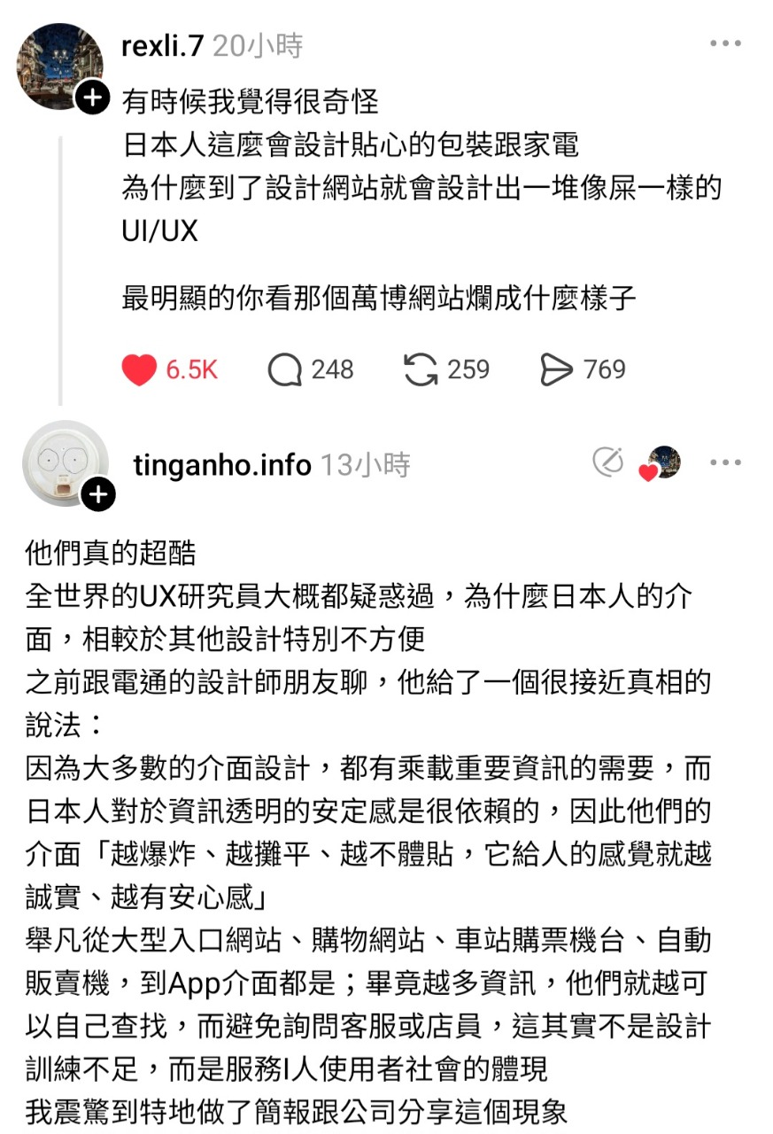 日本資訊類的網站,服務的是進去找資訊的人,所以會做成資訊導向的首頁。資訊多但盡量維持乾淨。而且他們的區塊和路線導引非常厲害。 其實你只要按照它的路線走,很好找。 實際上日本雅虎那個反而是目錄式,第一頁就可以找到你想要的。但美國那種反而要找半天。因為都是新聞報導和廣告。不要說什麼有大圖片很漂亮,首頁查找是功能性優先,不是在比漂亮清爽沒文字。