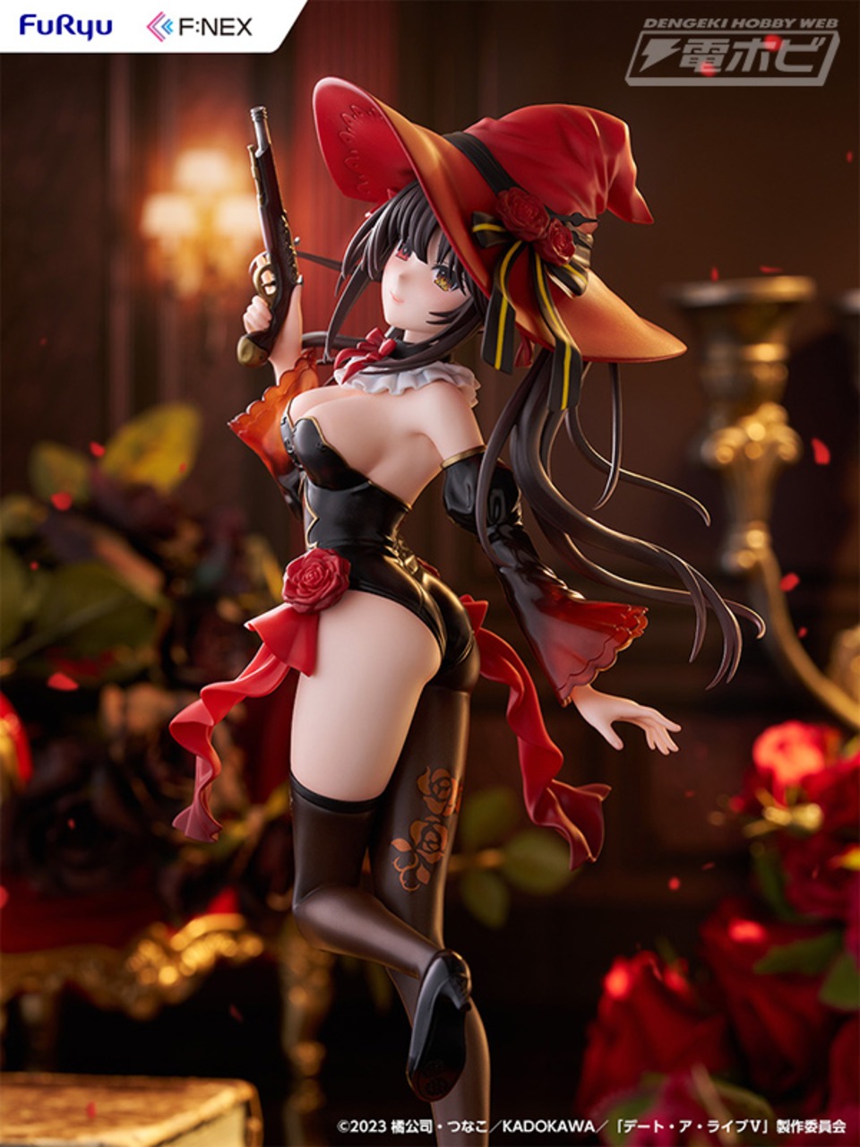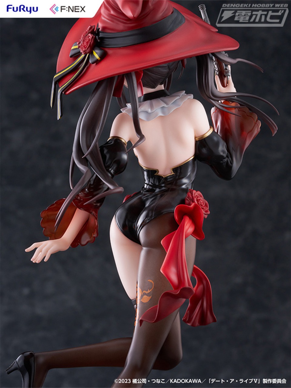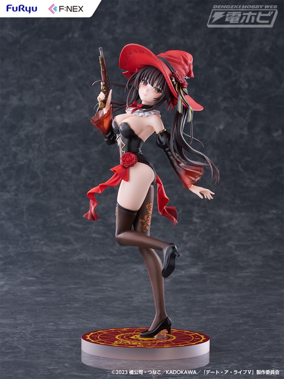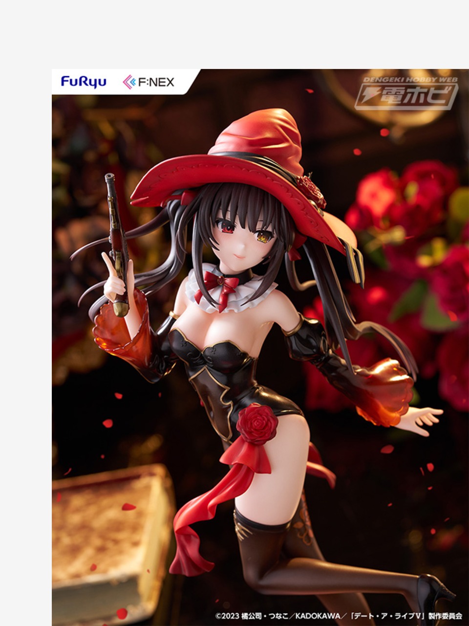 魅惑的的魔女風格時崎狂三以立體模型形式登場。 以深紅色魔女帽為特色的魔女造型,無論姿勢還是服裝皆為 FuRyu 原創設計。 以帶有光澤感的黑色為主調的服裝,在細節上也精緻刻畫。 此外,如流動般的髮絲動態、帶有透感的袖子、點綴腰間的玫瑰以及短槍的質感等,各處都充滿講究,是一款細節滿載的作品。 時崎狂三 魔女Style ver. 1/7 比例人偶