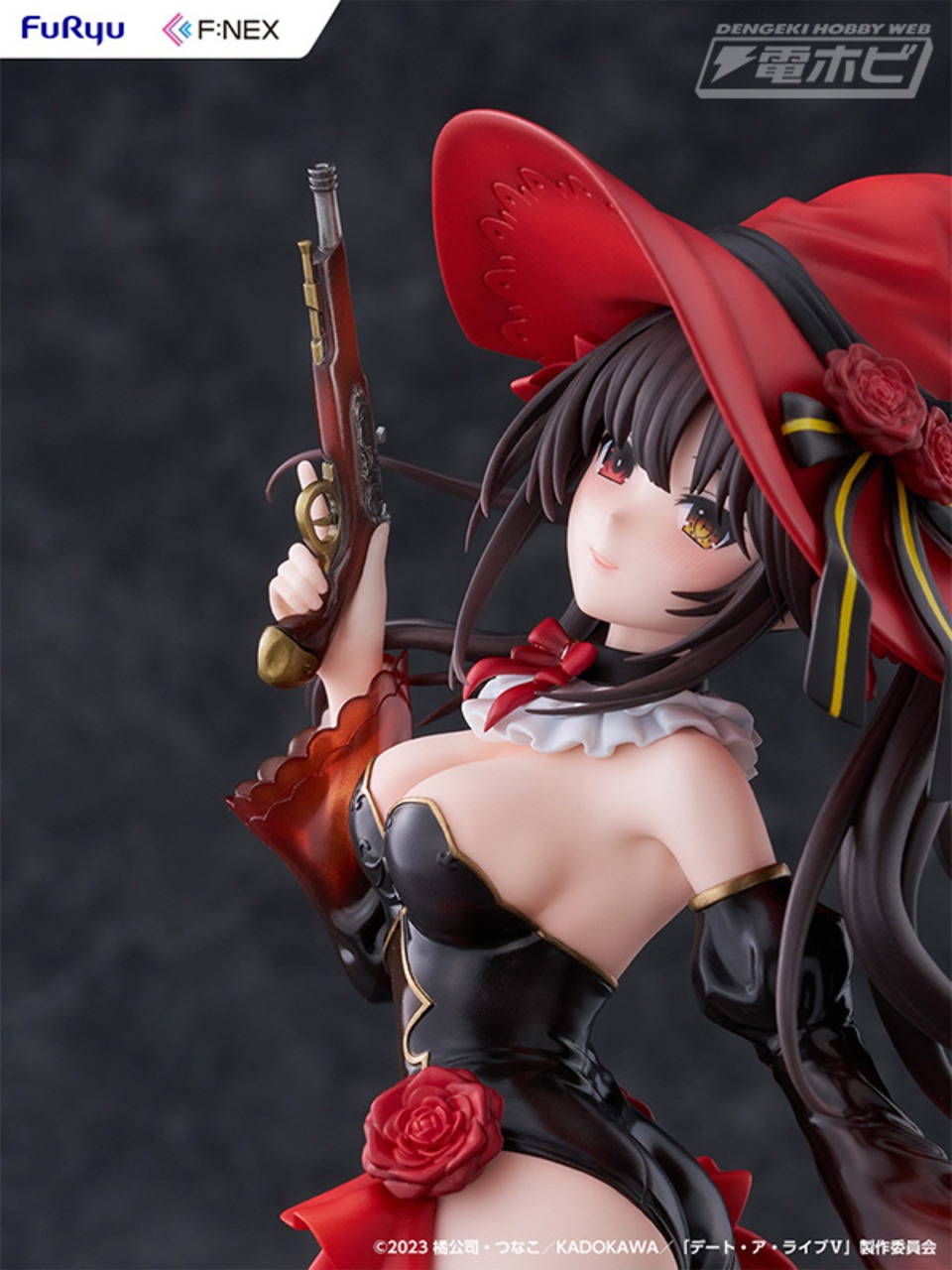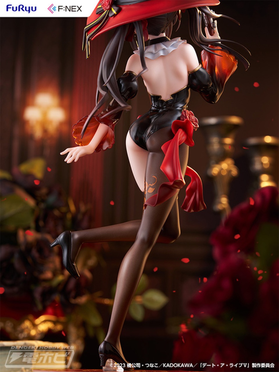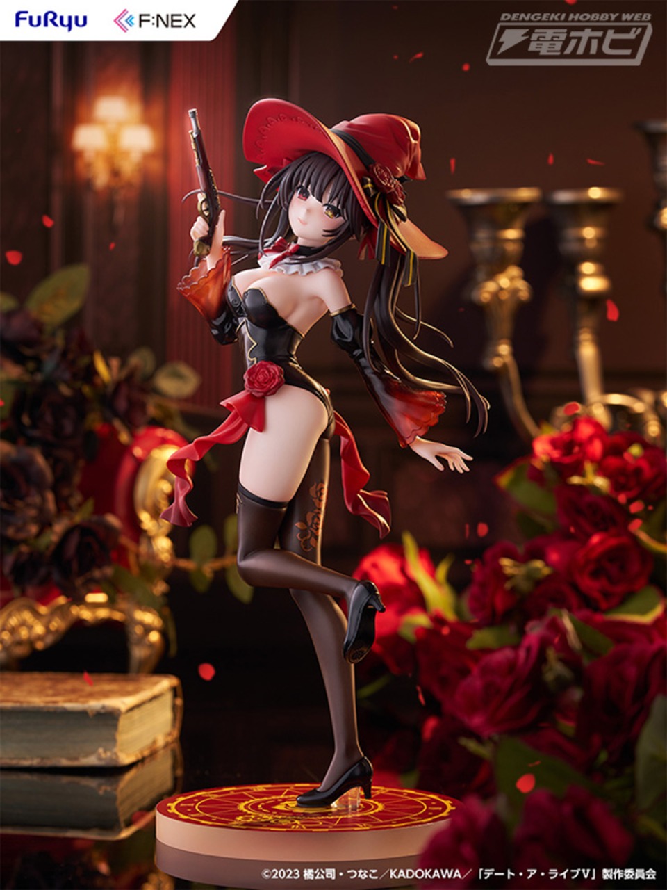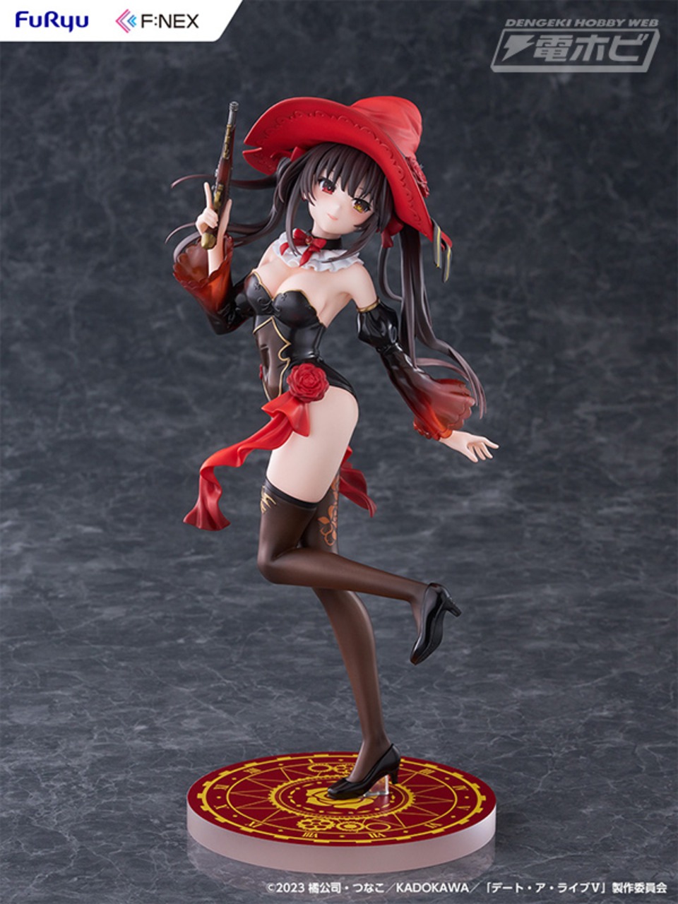 魅惑的的魔女風格時崎狂三以立體模型形式登場。 以深紅色魔女帽為特色的魔女造型,無論姿勢還是服裝皆為 FuRyu 原創設計。 以帶有光澤感的黑色為主調的服裝,在細節上也精緻刻畫。 此外,如流動般的髮絲動態、帶有透感的袖子、點綴腰間的玫瑰以及短槍的質感等,各處都充滿講究,是一款細節滿載的作品。 時崎狂三 魔女Style ver. 1/7 比例人偶