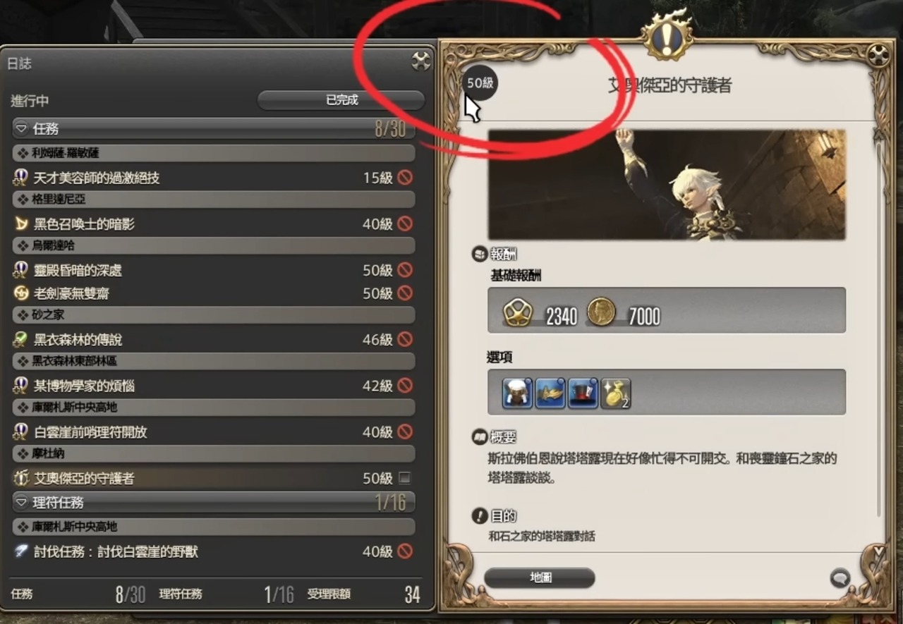 💡 重要觀念: 請務必分清楚「人物等級」(你當前職業的等級)和「主線等級」(任務視窗上顯示的建議等級)這兩個條件!