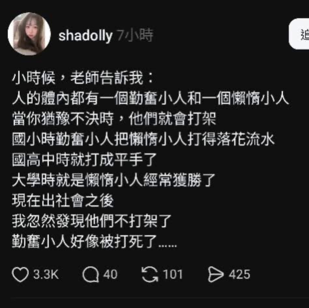 我死死的 你也死死的 [原文連結](出處小人成長史: https://www.threads.com/@shadolly/post/DUfcz2hkkb1?xmt=AQF0EMbRZfNVuAUhJYP556vtca4xURHS1pMro_JTCfEEJF11C2scMH9MuPe9mQSbf5vtMEp7&slof=1)