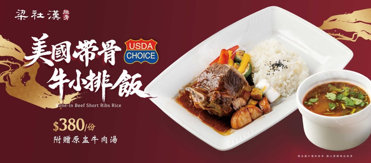 🍚 梁社漢排骨則推出「美國帶骨牛小排飯」,搭配精燉原盅牛肉湯,每份售價380元。