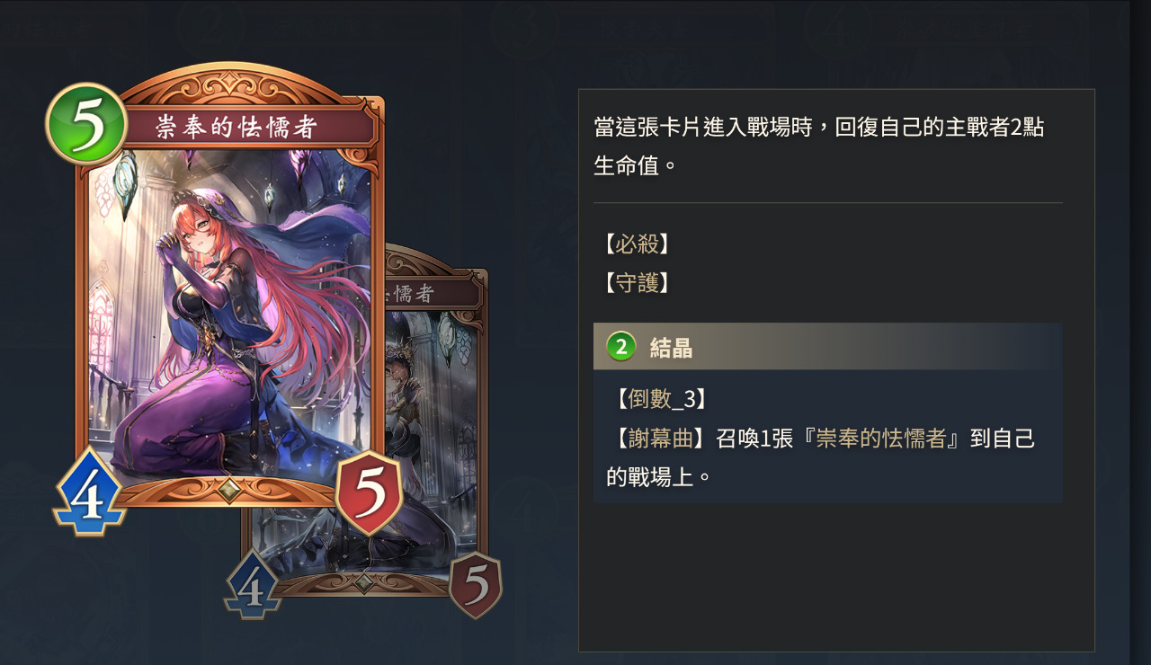 先講「結晶」,目前主教的三張結晶牌作為護符效果非常優秀,費用都只剩下1~2費,讓原本沒人在意的護符主教可以直接站上T1行列,其他非主打護符的主教也可以在低費回合用這些結晶強力過度,同時這些「結晶」牌在高費回合會受PP限制與其他牌互動有限,不會打出過強combo,「結晶」系統讓整個主教玩法活絡起來,掛上限制器之後卡片設計也可以更奔放。