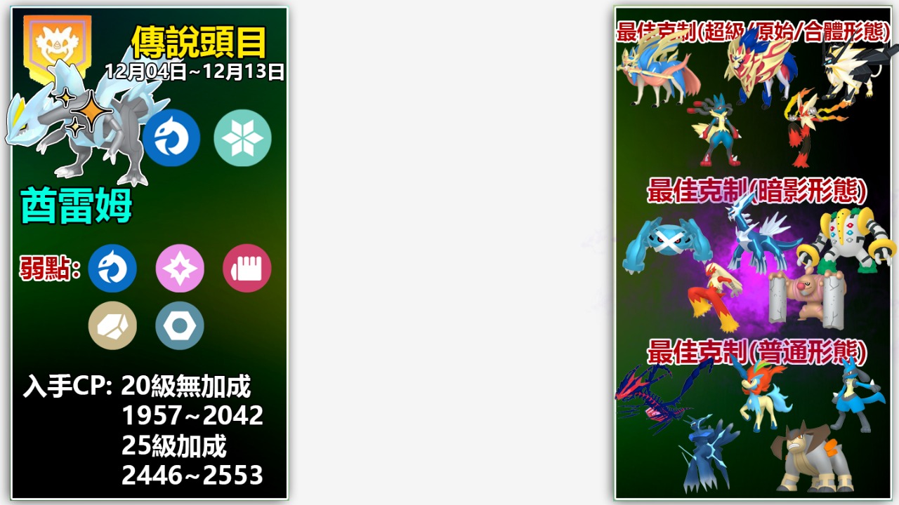 而跟萊希拉姆合體成焰白酋雷姆,一樣勉強適合高級聯盟,不過大師聯盟內卻是排在第6名的強大選擇,