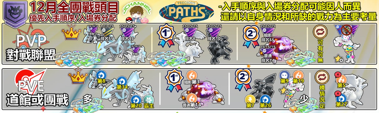 若想更全面去了解所有傳說和超級團戰頭目的優先入手順序,甚至是團戰入場券分配詳情等,