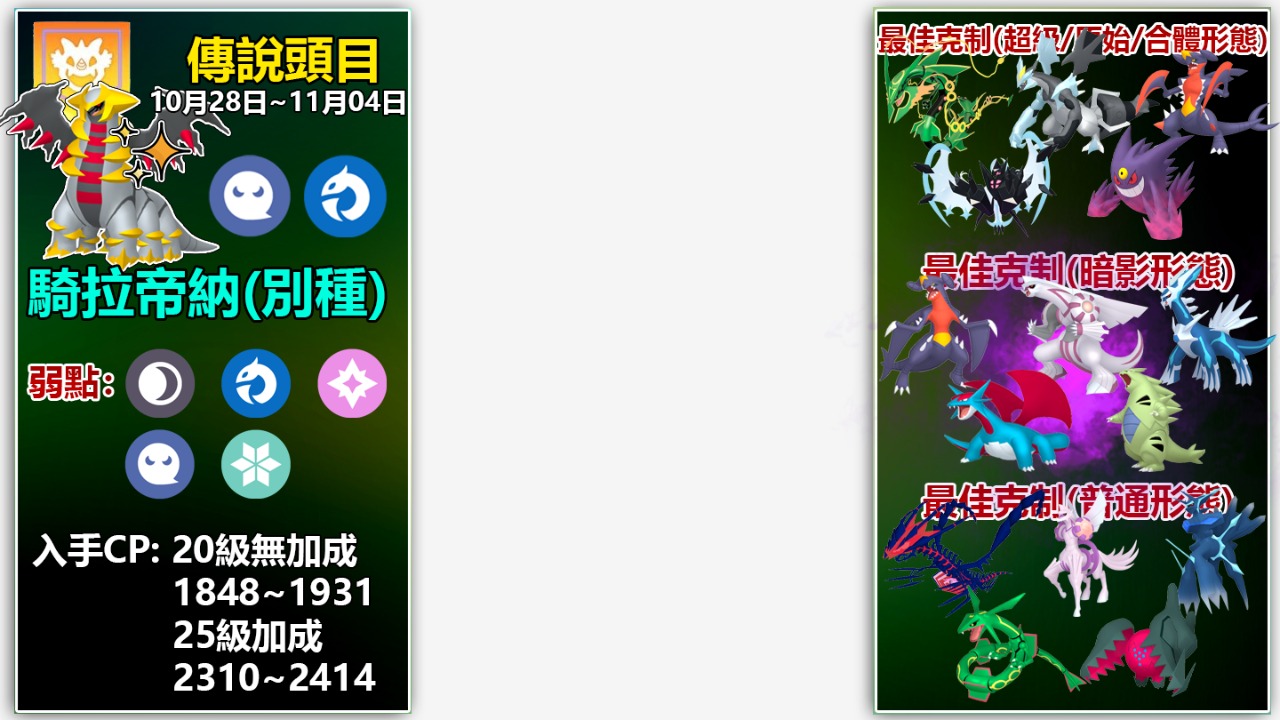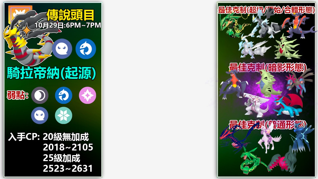 -溫馨提醒:10月29日***週三傍晚6點至7點的***團戰約會***主角是***起源形態騎拉帝納,而非別種形態!