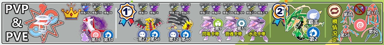 普通卡帶於PVP大師聯盟內排名104名左右,水流和閃電卡帶在高級聯盟、大師聯盟均有百名左右的實力!