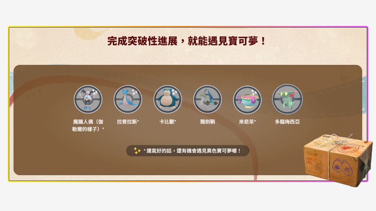 7日突破獎勵更新為伽勒爾魔墻人偶、獨劍鞘、來悲茶和多龍梅西亞等等~