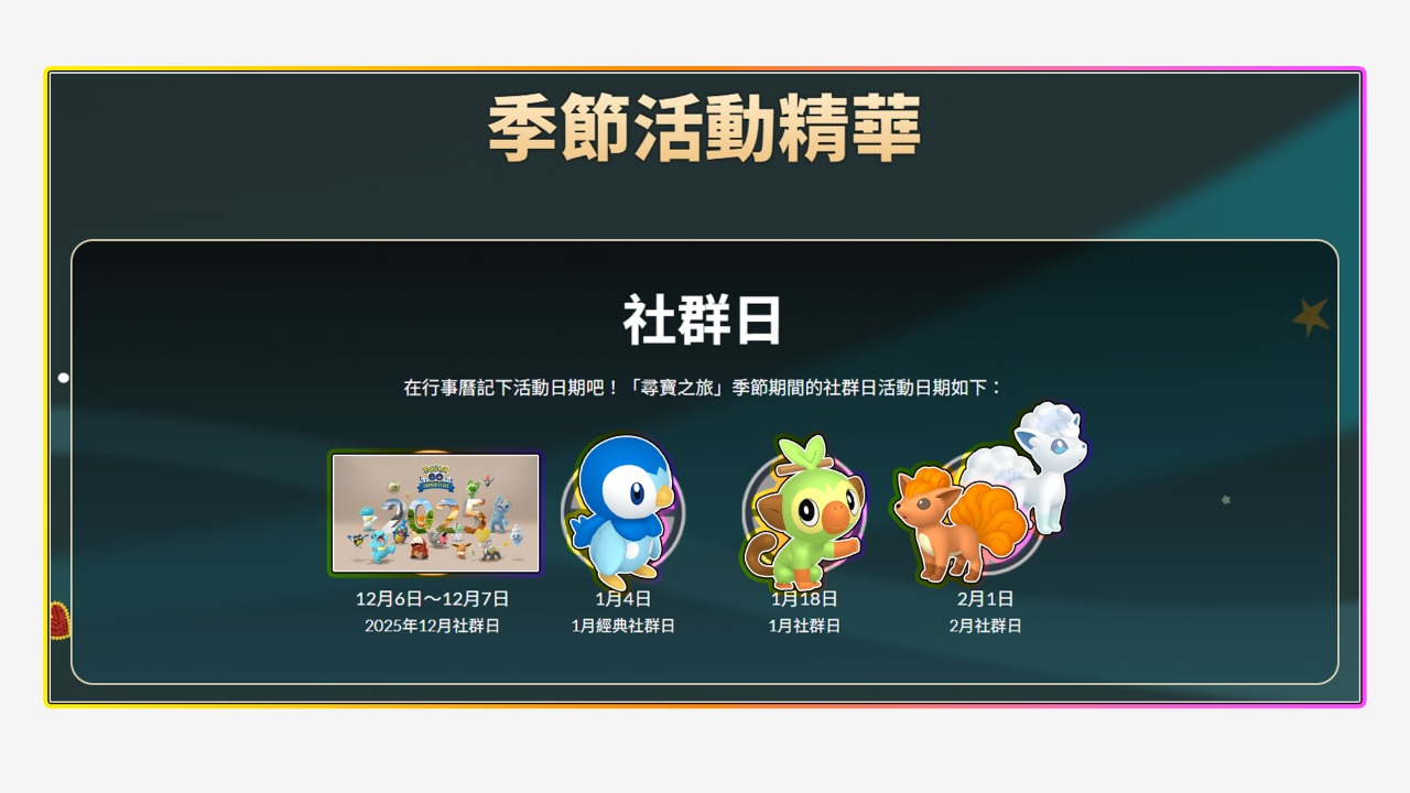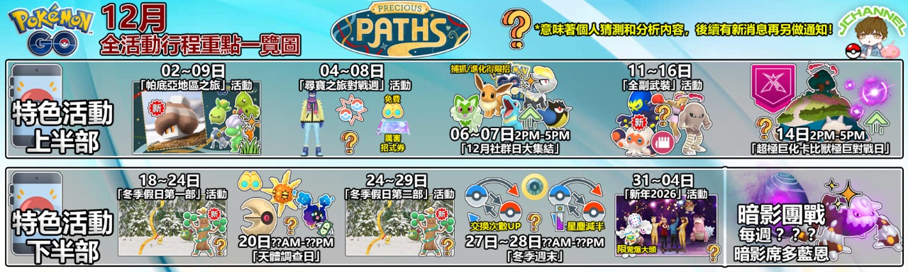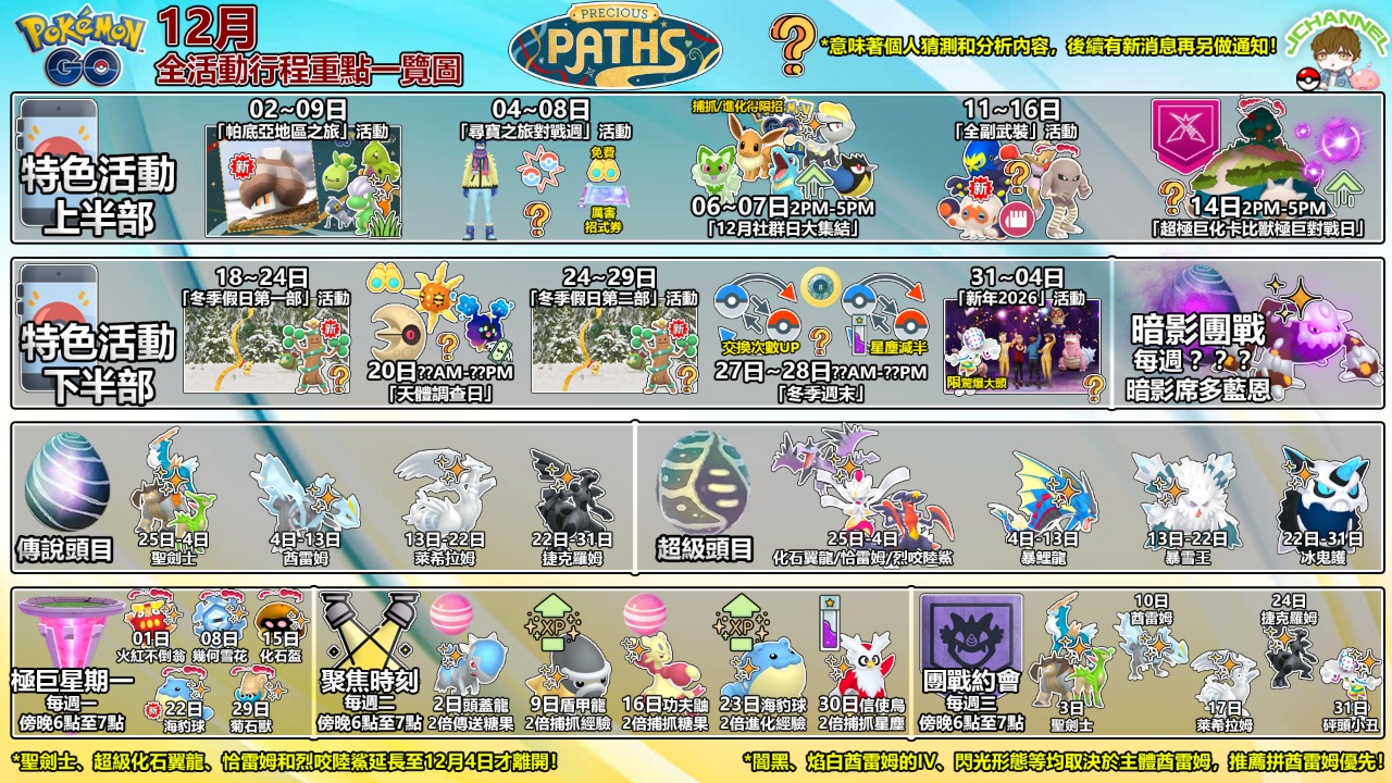 以上大致就是GO遊戲中的「尋寶之旅」季與12月的全活動行程或隱藏重點啦,