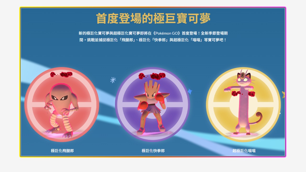 而極巨化「飛腿郎」和「快拳郎」估計只會透過週更的極巨對戰或特色活動來登場?!