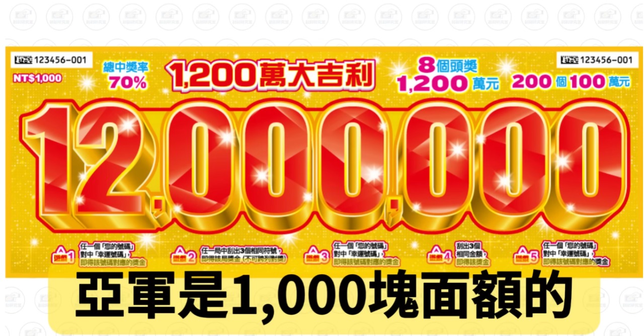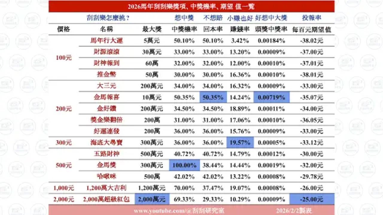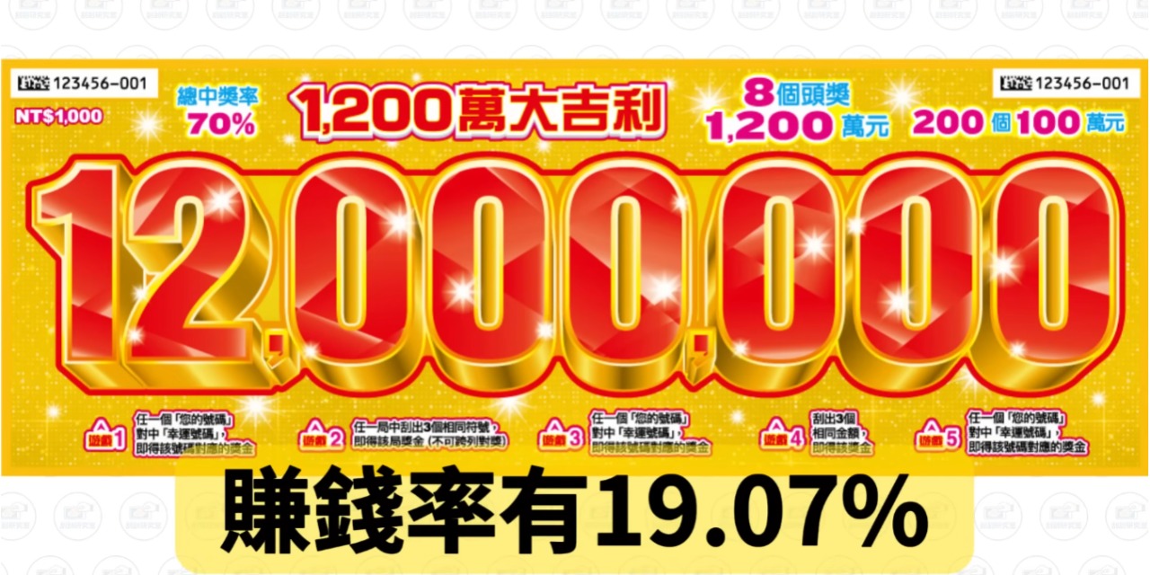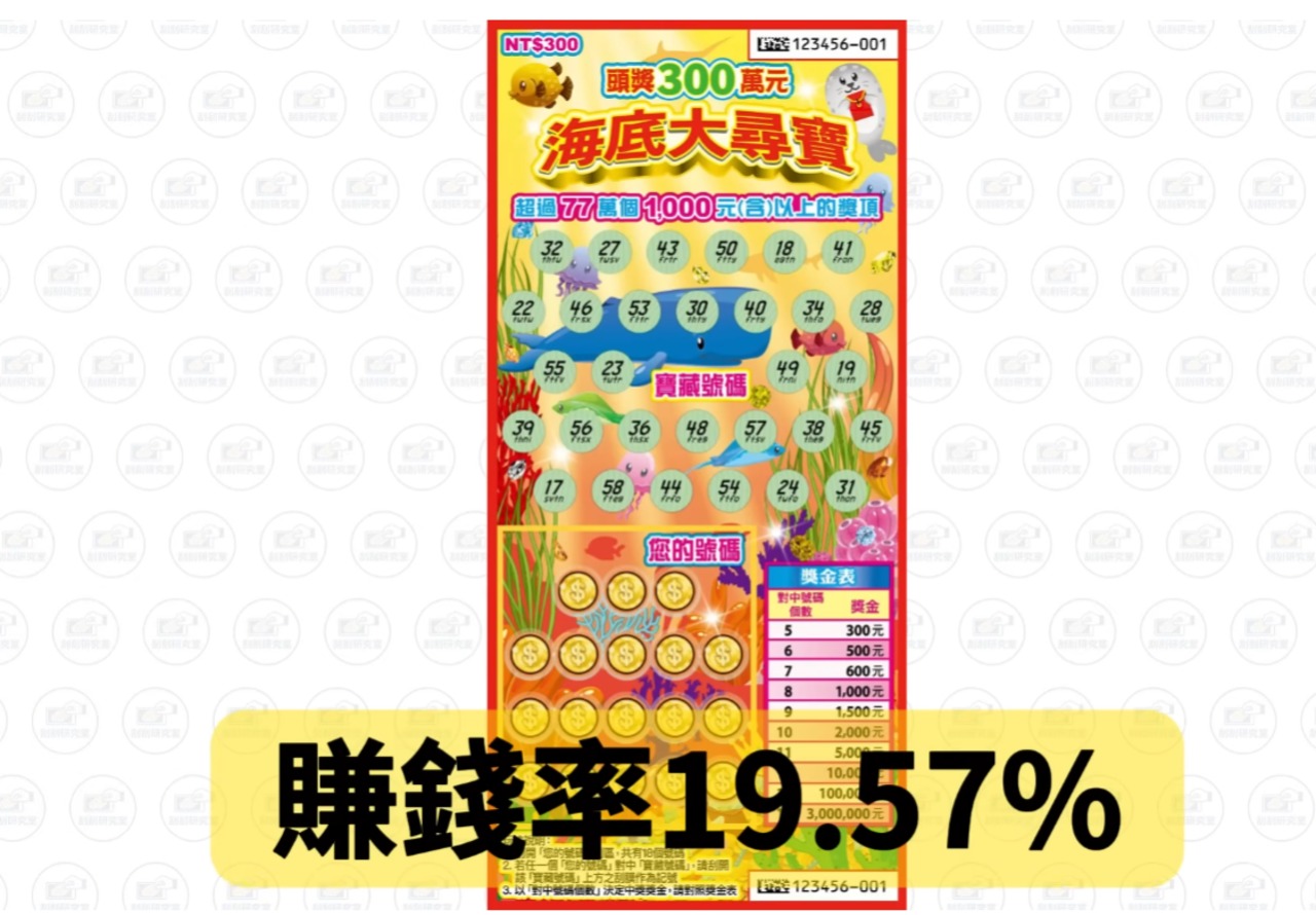 不少人買刮刮樂會被「中獎率高」吸引,但其實很多只是「中 100 元賠 100 元」,並沒有實際獲利。因此若追求「實際賺錢」機會,排名就完全不同: