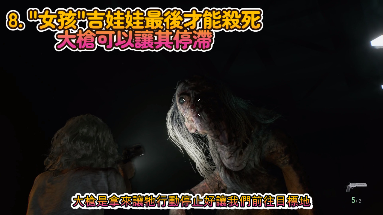 地下室的大隻王吉娃娃,是沒辦法幹掉牠的,大槍是拿來讓牠行動停止好讓我們前往目標地,大部分還是要利用燈光來阻止牠,最後會有劇情殺才可以完全撂倒牠。