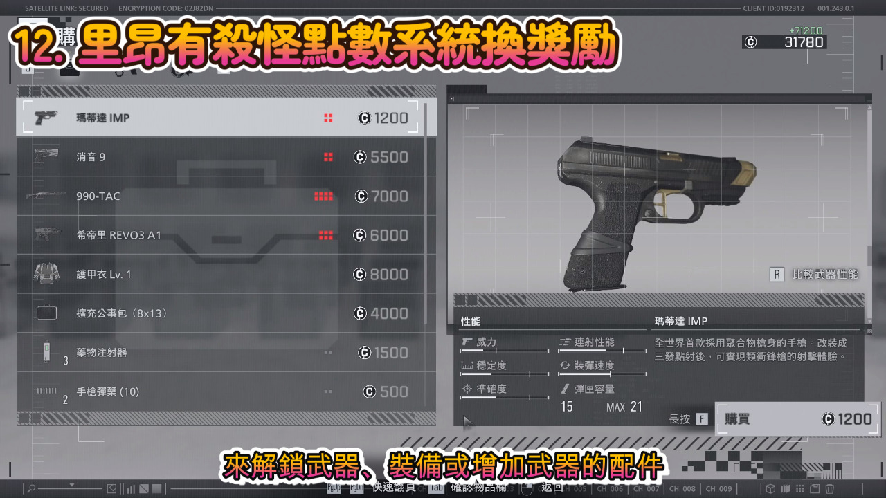 第二章圖的里昂可以用殺怪得來的點數來解鎖武器、裝備或增加武器的配件,這個系統也可以用點數換子彈,讓我們玩里昂時可以真正達成清圖,但相對的會有遠近敵人同時對你發動攻擊,所以有需要時我們都要看時機切換狙擊、霰彈槍、衝鋒槍或小手槍。