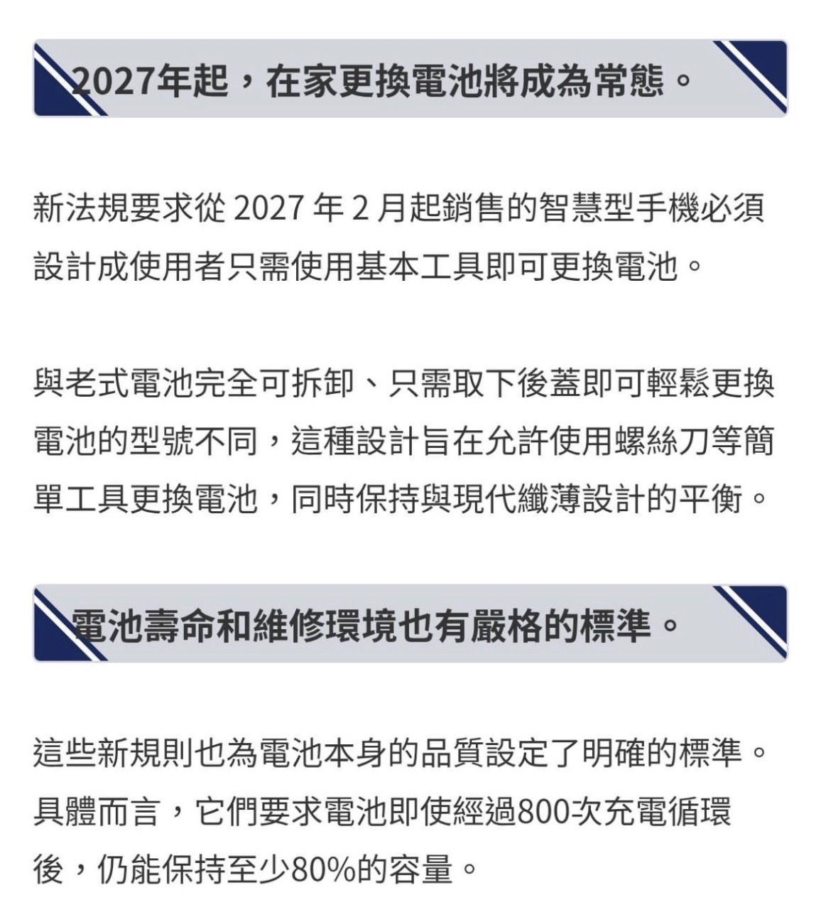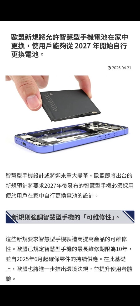 歐盟新法規2027用戶可自行更換電池