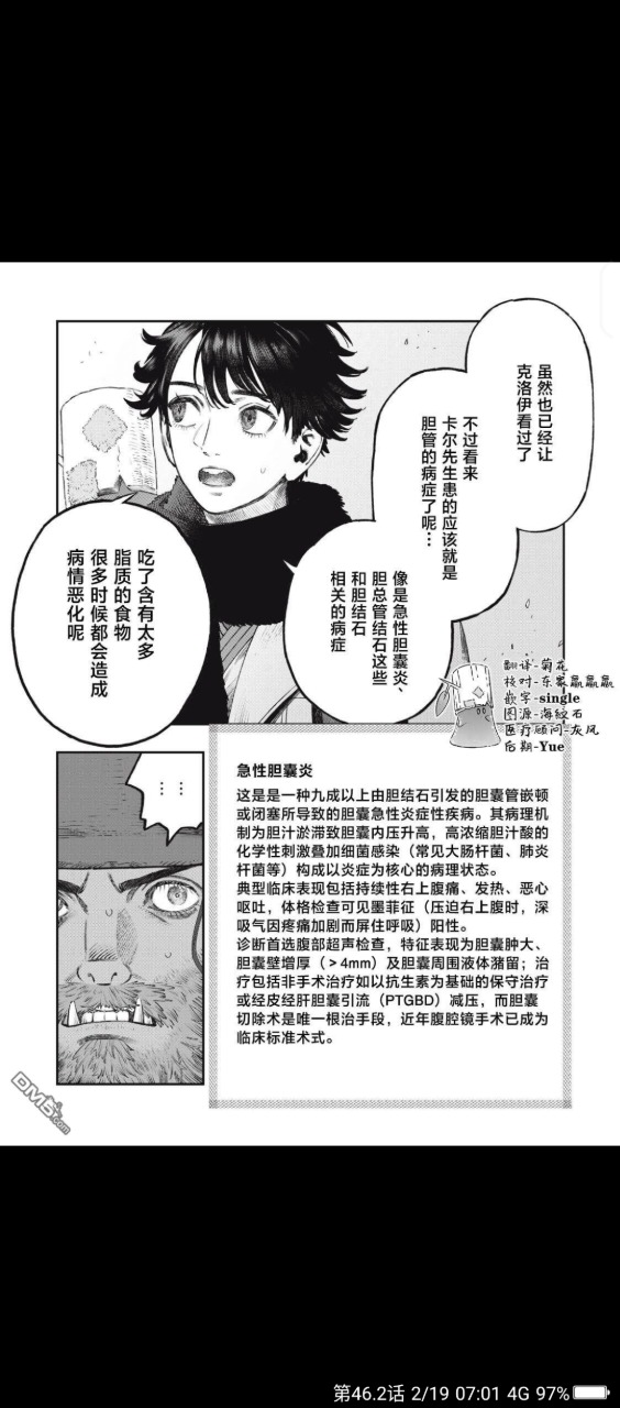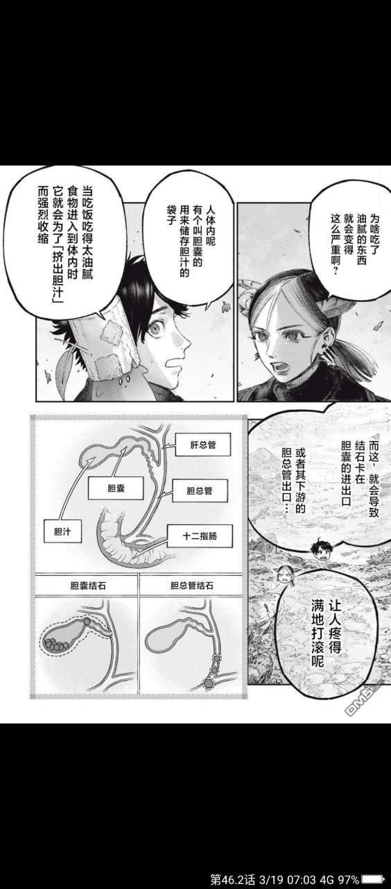 漫畫名:高度發達的醫學與魔法別無二致 看到這邊有種感概...畢竟我是過來人~ 痛到送急診,整個人捲曲無法行動;隔日就進手術房把膽囊完全切除了w 各位還是多喝水少油炸健康作息時間,雖然我不會再有膽結石的問題,但可不想再來個尿路結石(怕爆