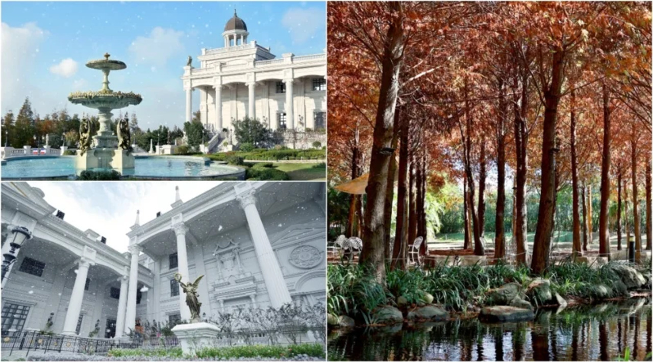 不僅有轉紅的落羽松群,造訪城堡記得打卡全台最高50米歐式穹頂、200公尺巴洛克石柱長廊,以及週末限定雪花秀等4大看點。特別是雪花秀部分,每週六、日16:00、17:00夢幻飄雪,氛圍感拉滿的「白雪+金紅落羽松森林」,浪漫強度大爆表。