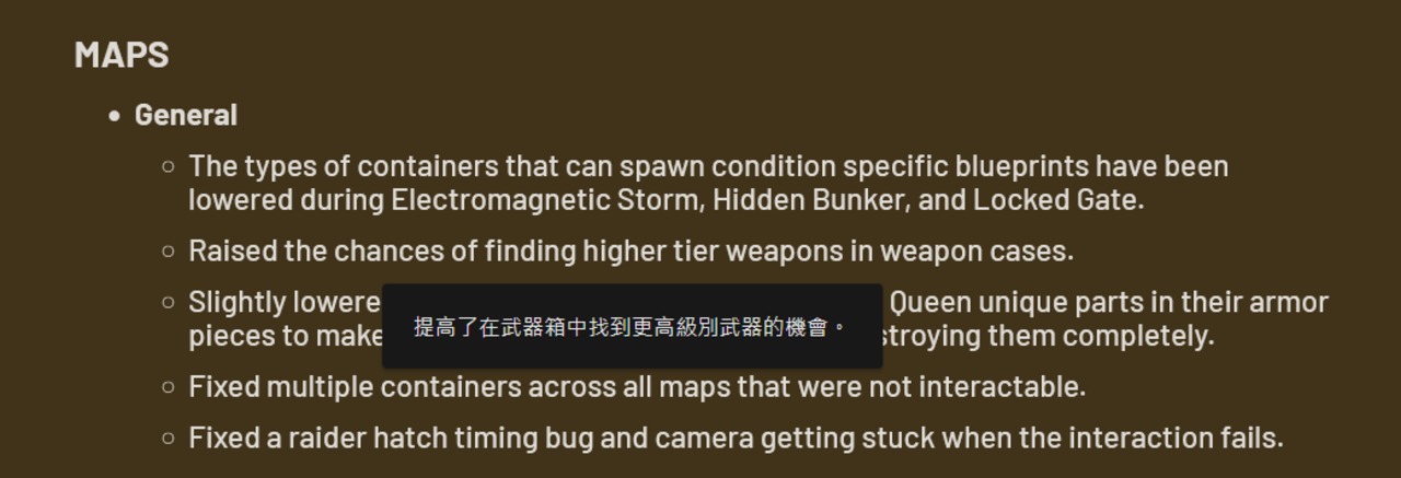 這邊我做了簡單的翻譯,正式名稱還是要等官方釋出,現在社群感到比較可惜的是地圖更新還是太慢,我自己還有一個疑問是,為甚麼沒有新武器釋出? 大家都在拿那幾把來遊玩,希望官方能讓武器種類更多,最好再加上武器外觀系統。