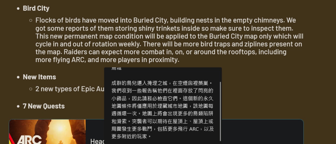 這個”bird city鳥城”機制是永久的,我想官方也從數據上發現很多PVE玩家喜歡在埋藏都市這個圖閒晃,因此添加了這個機制。