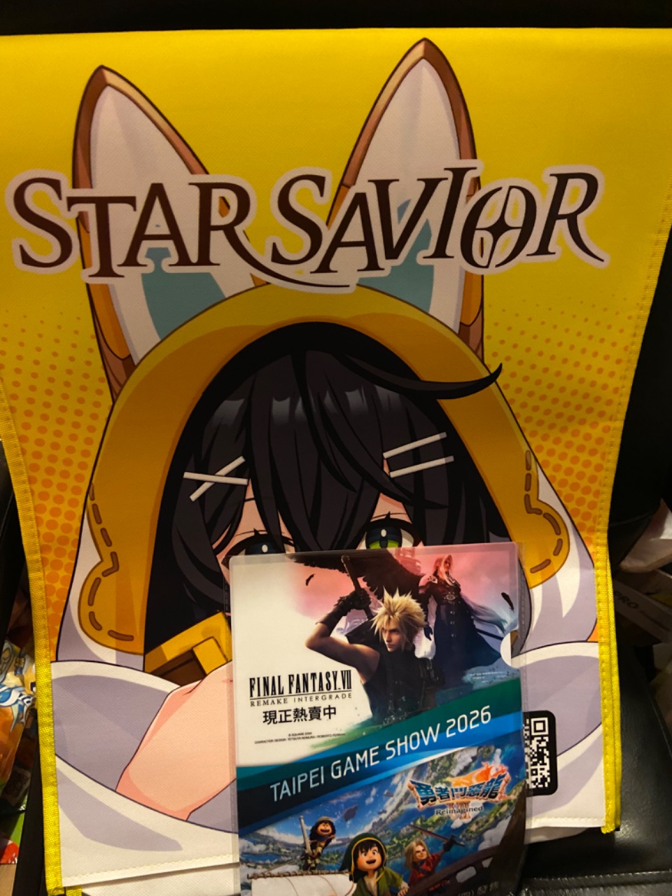 入手方式:在 star savior 星之救援者的攤位,追蹤他們的X或IG,就可以抽一抽一番賞,抽到C賞就可以拿到了,如果現場使先預約遊戲可以在註冊網頁抽10抽角色,有抽到SSR角的話就可以再抽一張一番賞,還蠻容易就可以抽到囉