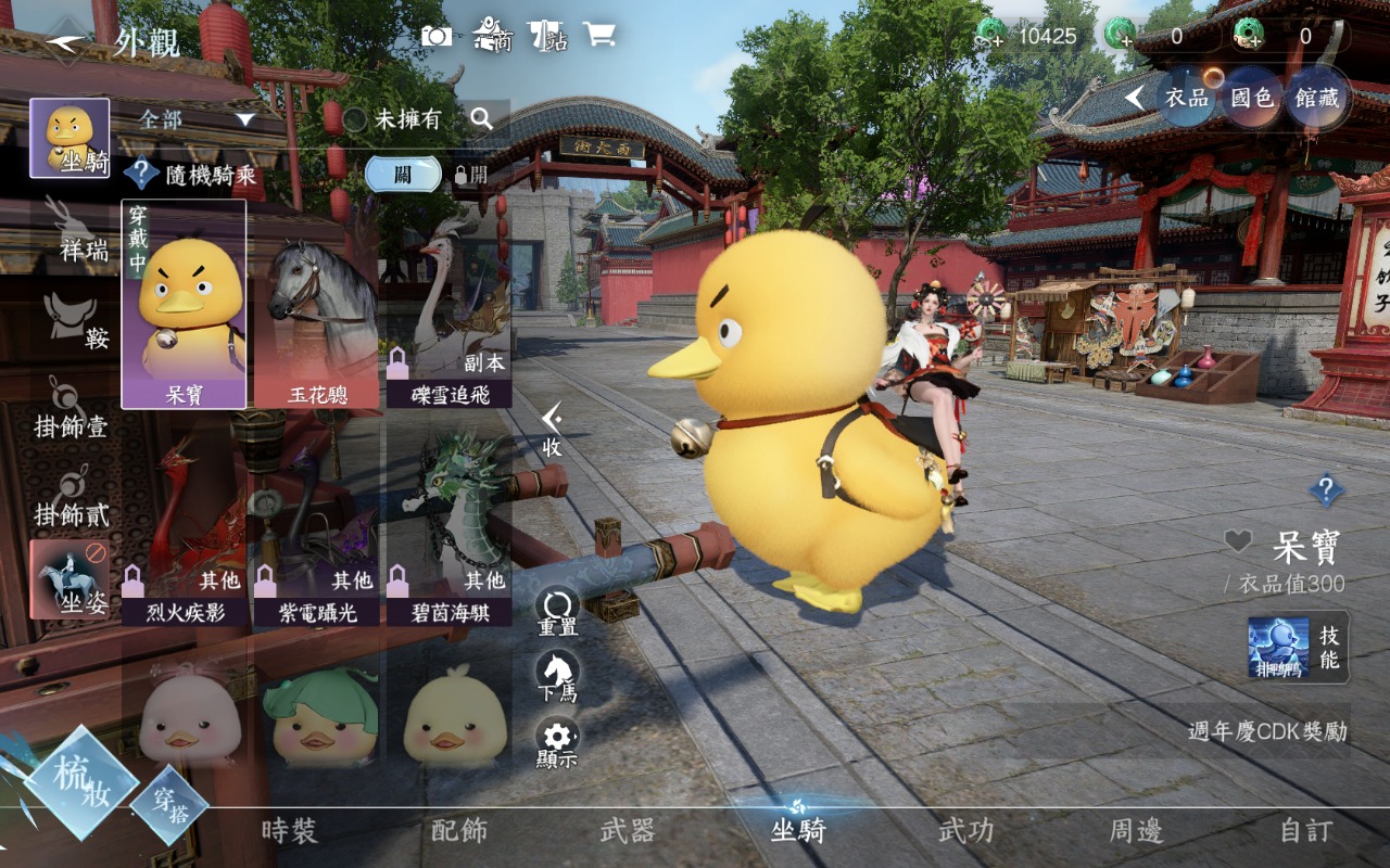 鴨鴨換到之後去外觀-坐騎 那邊就可換成鴨鴨了
