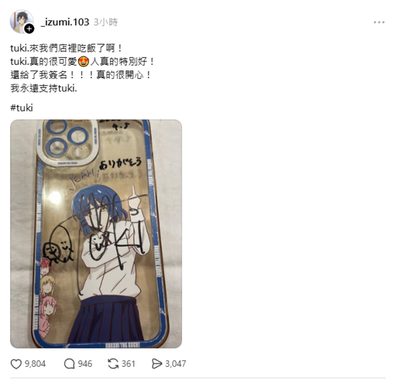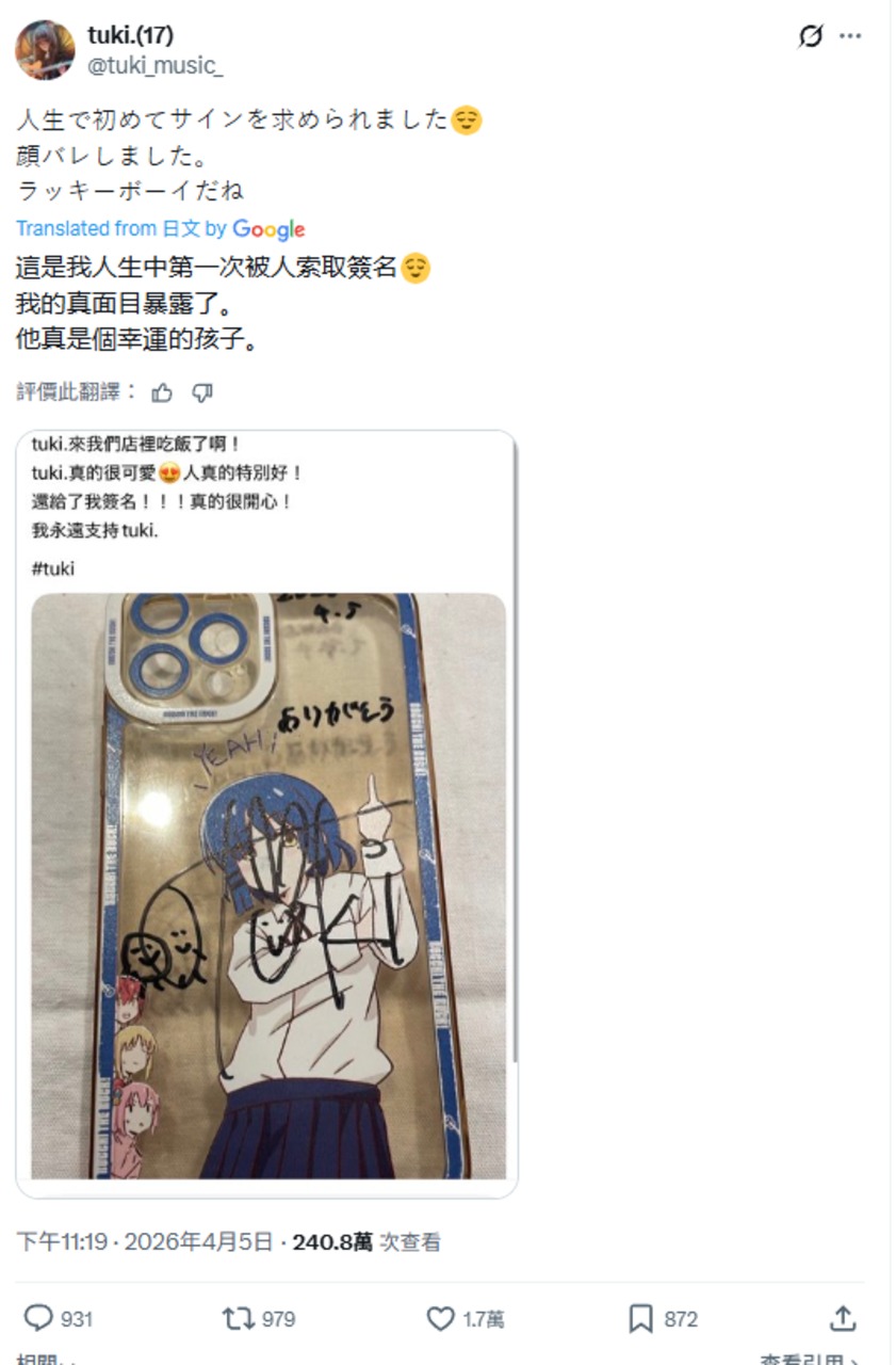 今日網友分享成功在店內和tuki.要簽名的經歷,引發討論。