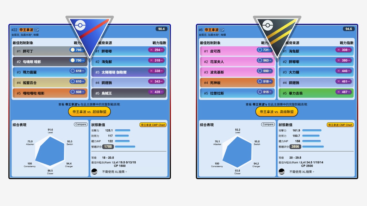 乃是當下PVP超級聯盟排行22名,高級聯盟第6名的熱選主流戰力!