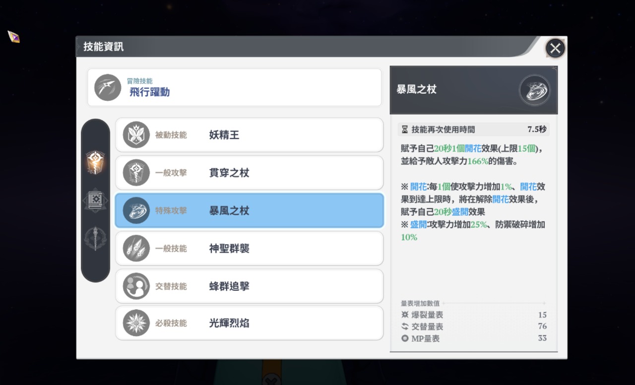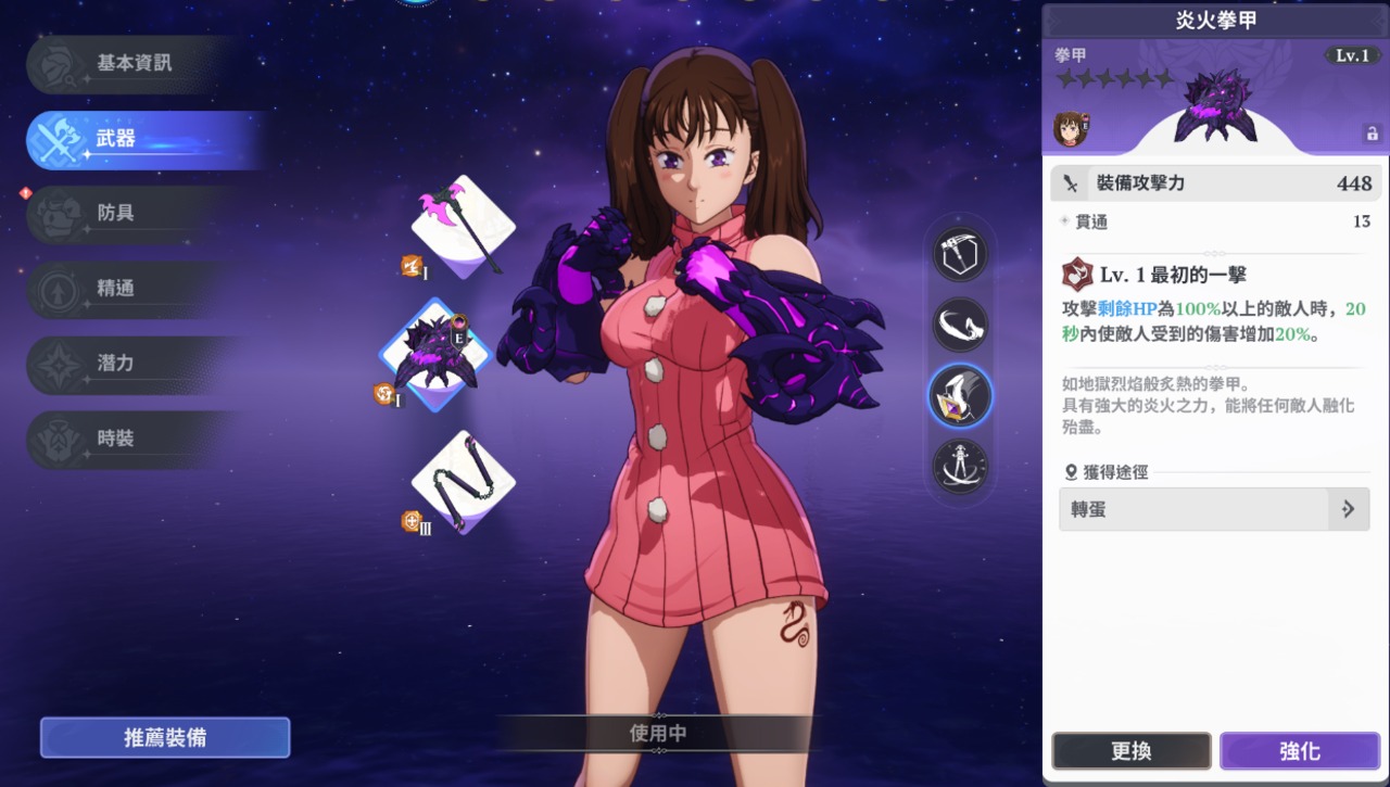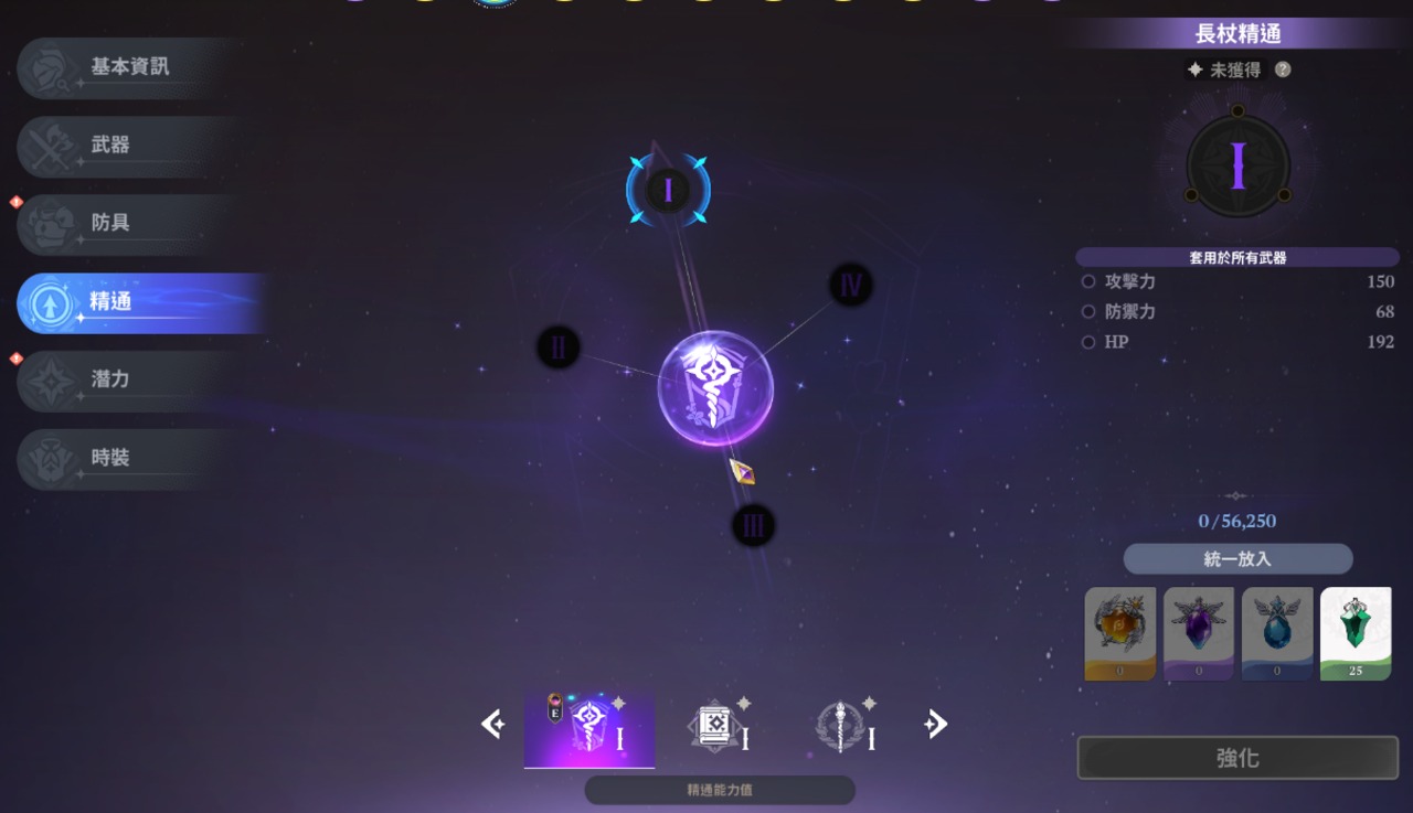 潛力則類似大家熟知的命座,三種武器共用潛力等級,並會依照裝備的武器而改變附加能力。