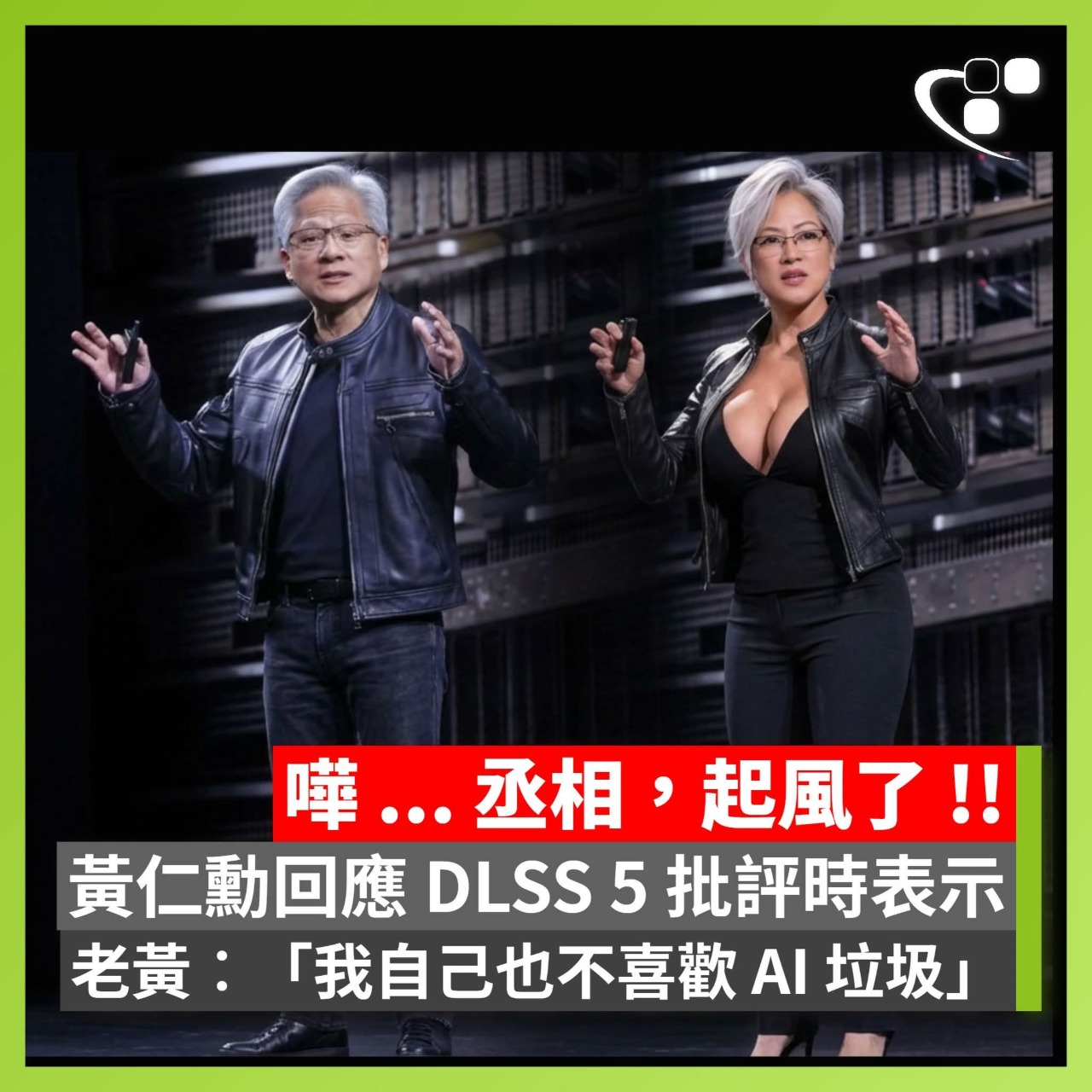 【 丞相,起風了 !! ... 😂】NVIDIA 近日發布全新 DLSS 5 技術,其生成式 AI 遊戲內容受到廣泛遊戲開發者及玩家評批。初時,NVIDIA CEO 黃仁勳對這些批評表示相當不滿,指稱相關說法完全錯誤。不過,面對評批聲音日益高漲,黃仁勳在 Lex Fridman 播客訪問時態度轉趨緩和,並表示︰「我自己也不喜歡 AI 垃圾 (I don’t love AI slop myself),理解玩家對 AI 生成影像效果的擔憂。」