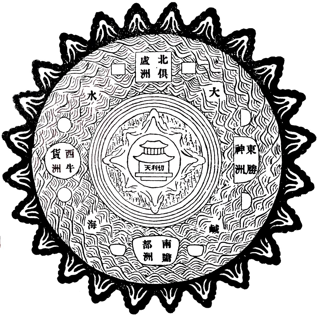 如圖 西遊記的故事裡 常聽到東勝身洲 南贍部洲 西牛賀洲 北俱盧洲 等四大部洲
