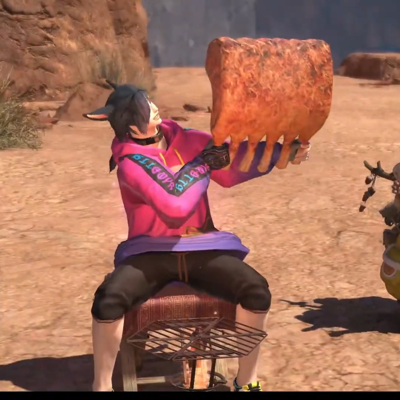 劇情提到鎖刃龍又在亂打架,明明不是為了吃飯,艾露貓教光戰用異臭彈讓兩隻魔物分開。