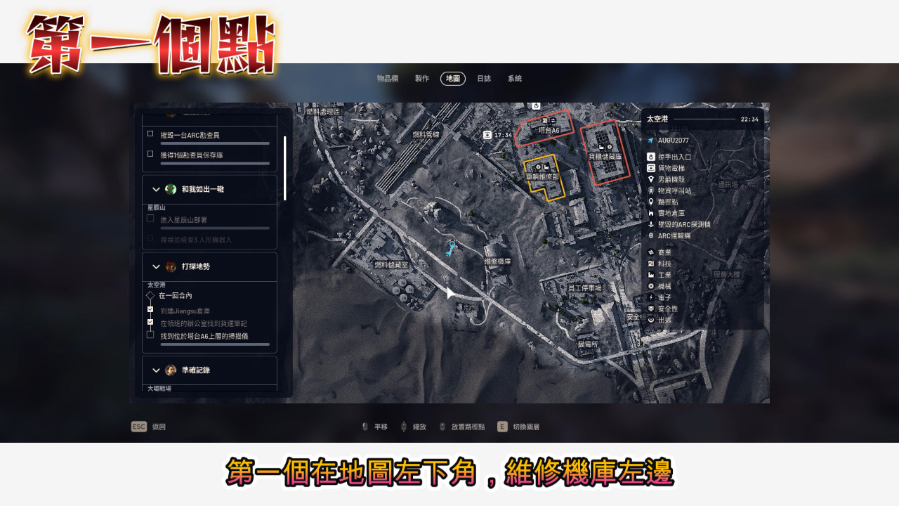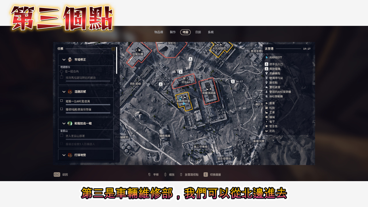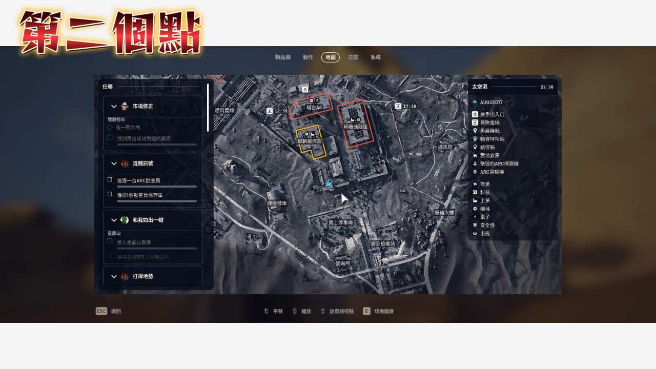 以上十八個點位,給需要來太空港搜東西的朋友們,地道裡面的武器箱子就不要去了,那邊是高機率死亡區,我試了幾次都相當危險,再次提醒大家搜的時候連歐服並把跨平台取消,看到人要開麥打招呼,這樣你的生存率就可以大大提高。