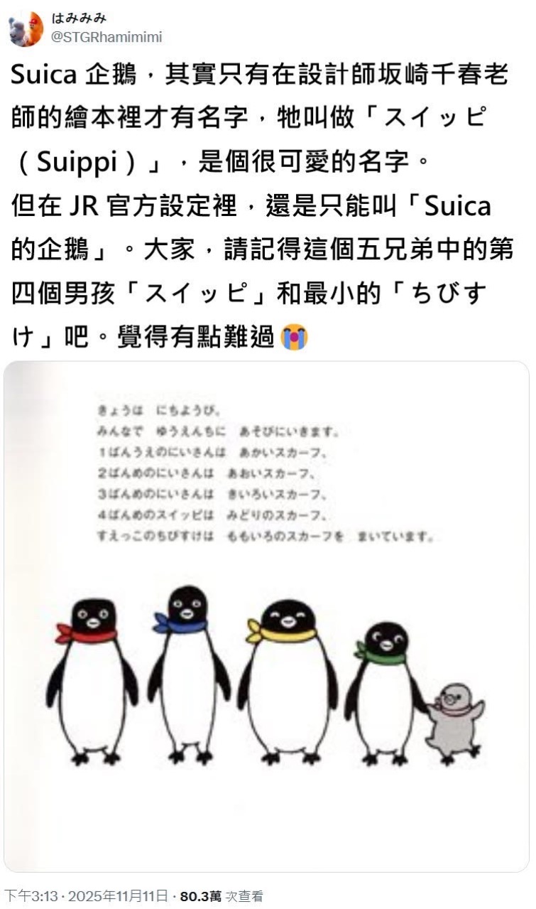 許多粉絲熟悉的那隻黑白小企鵝, 其實名字叫 Suippi(スイッピ), 原本只是一隻沒有名字的吉祥物, 如今也終於正式被叫回真名了。