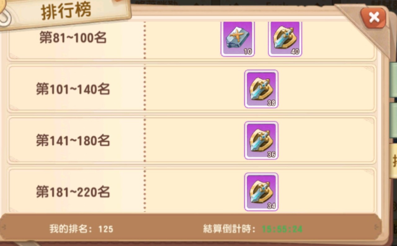這是隔一天早上確定的排名及獎勵,只掉了2名