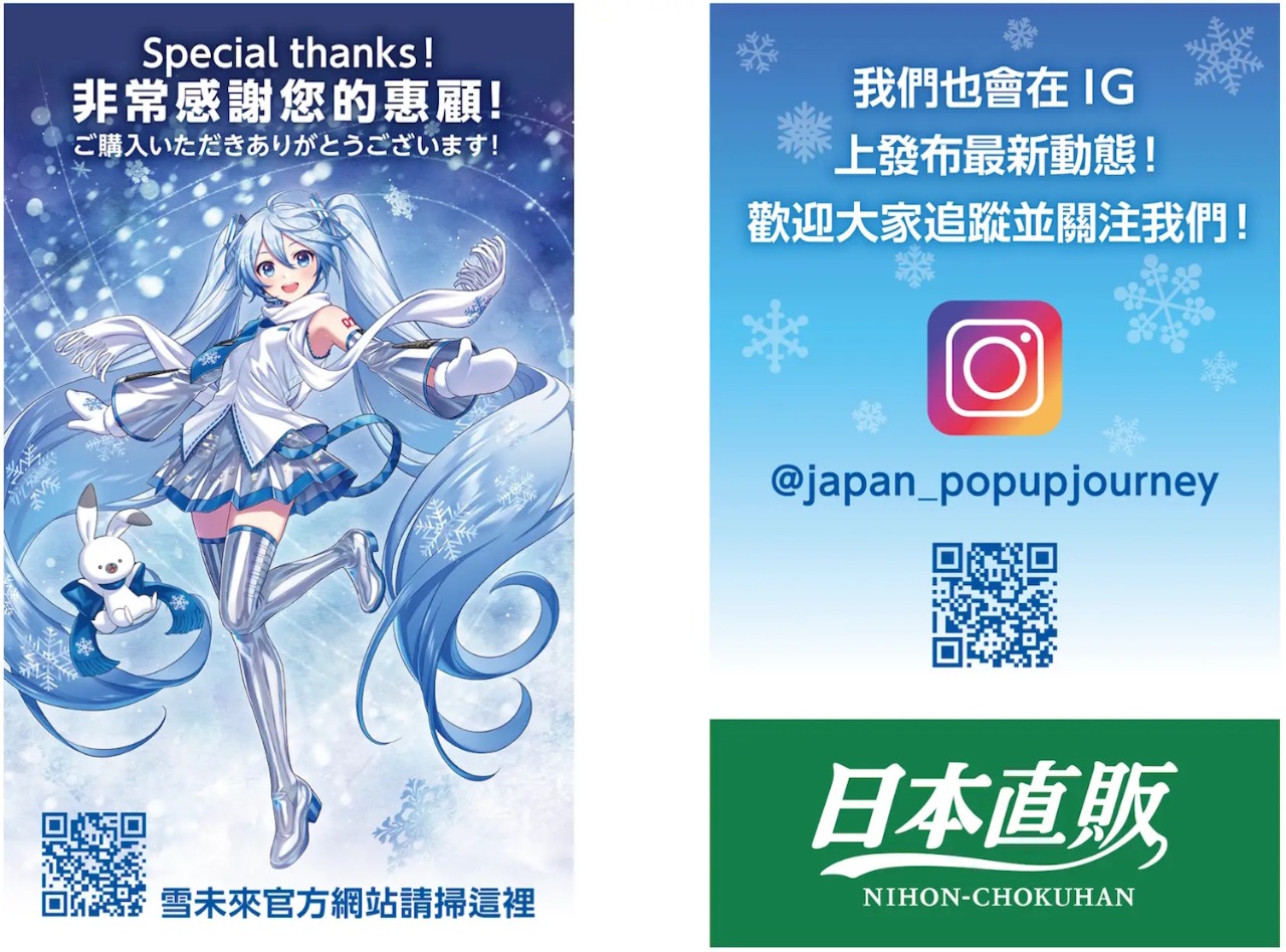 向所有購買者發放名片尺寸之卡片,掃描卡片上 QR Code 即可連結至官方社群媒體及相關資訊頁面,實現展期後持續的資訊獲取與購買引導。