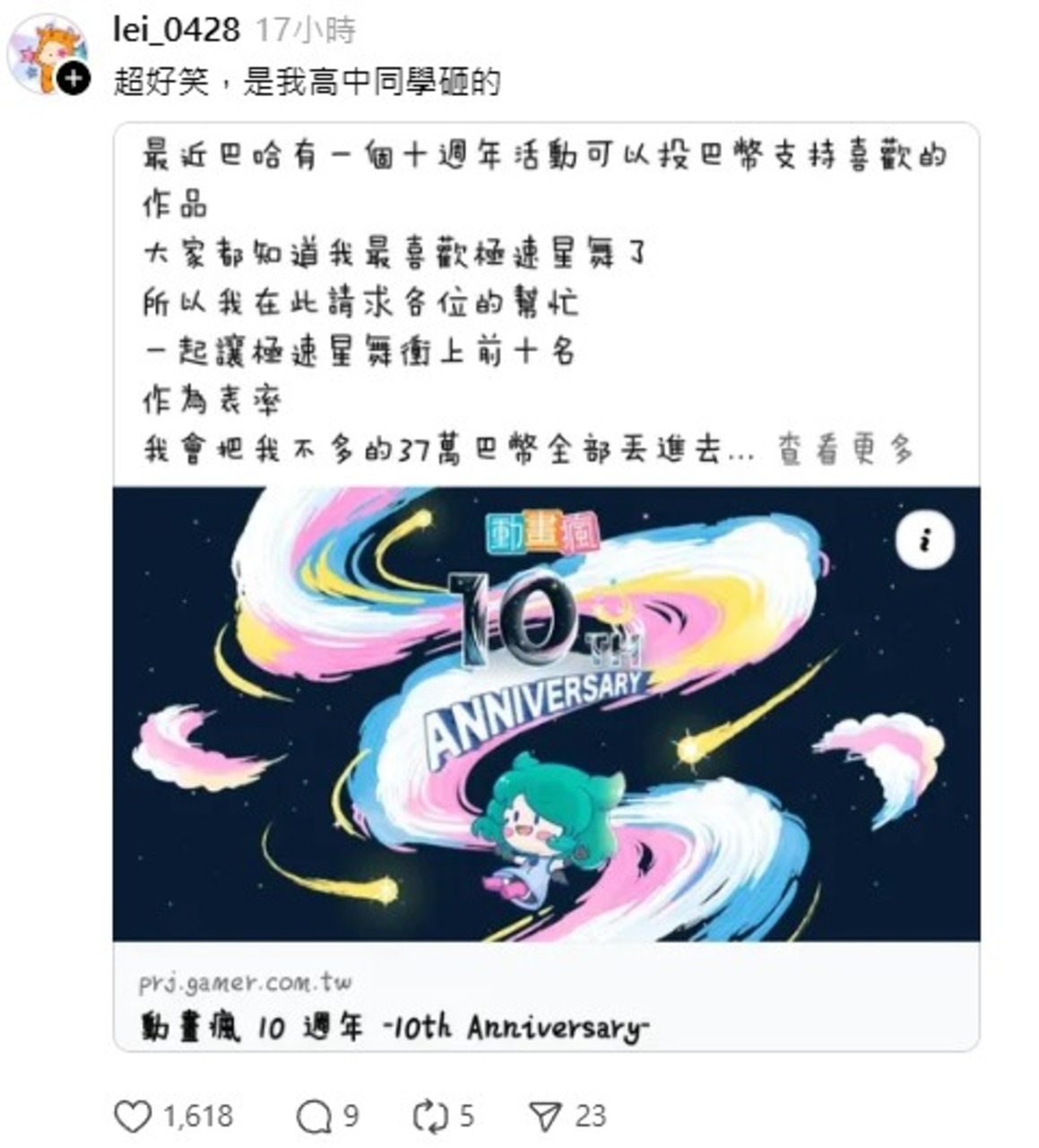 近日 巴哈動畫瘋十周年