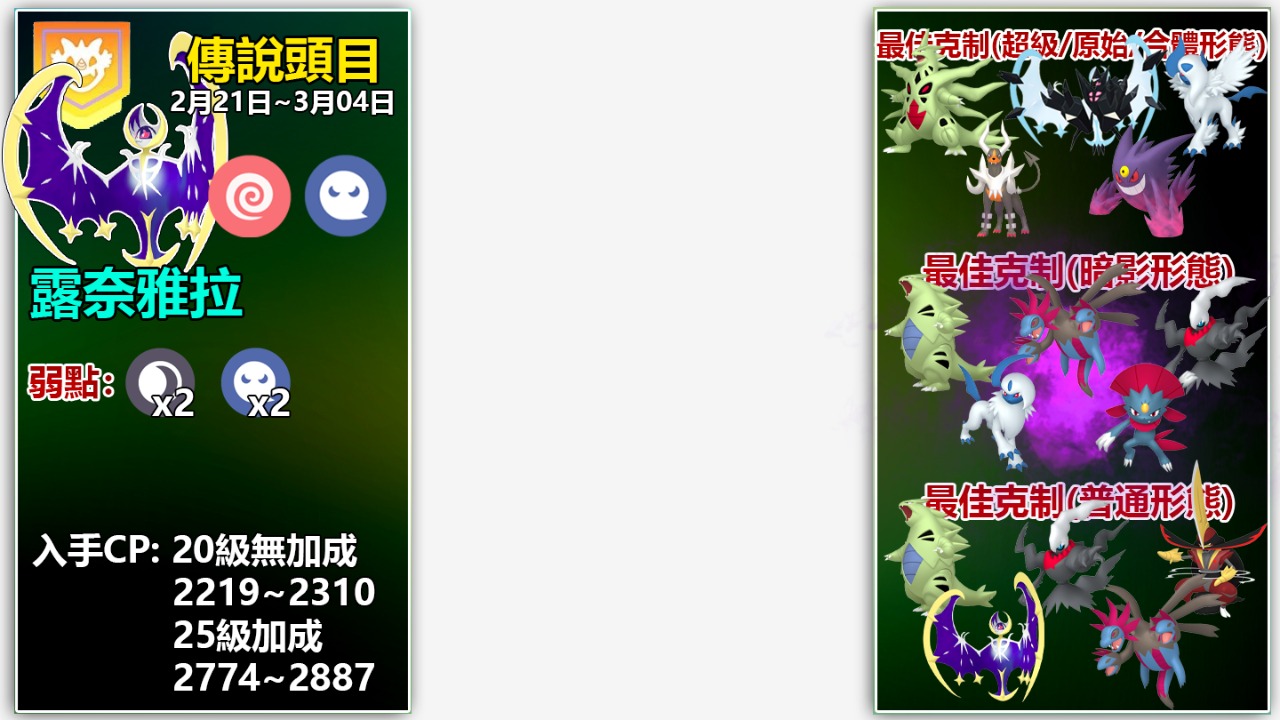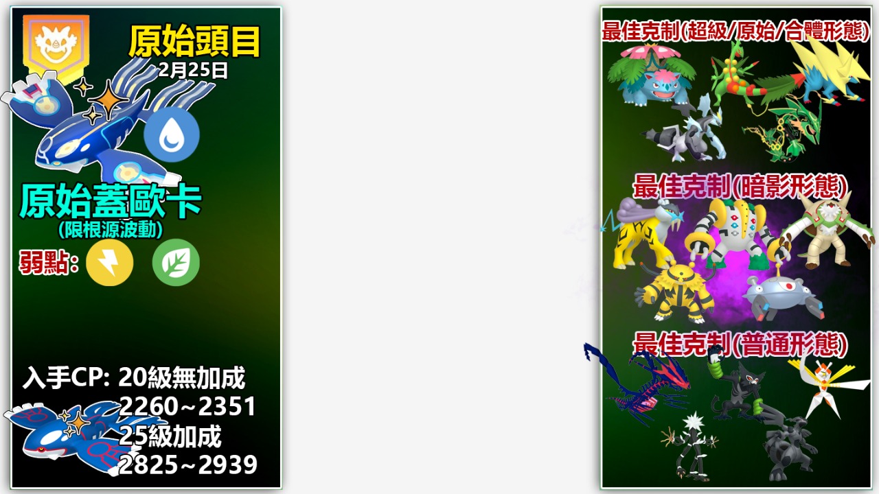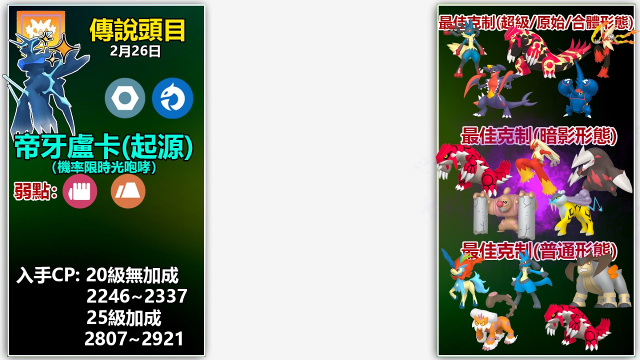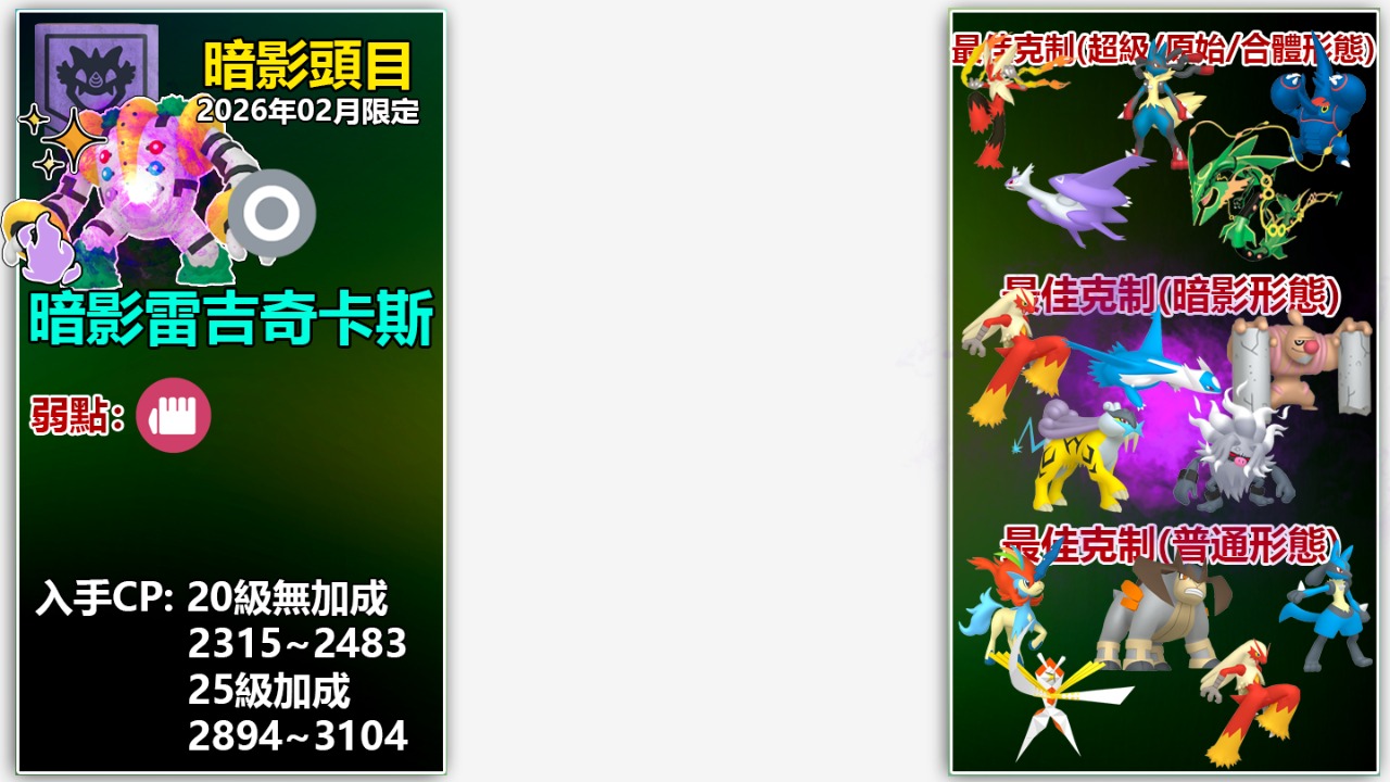 以上頂多是2月20多隻傳說、超級、原始回歸,甚至是合體形態等頭目的冰山一角攻略與詳情!