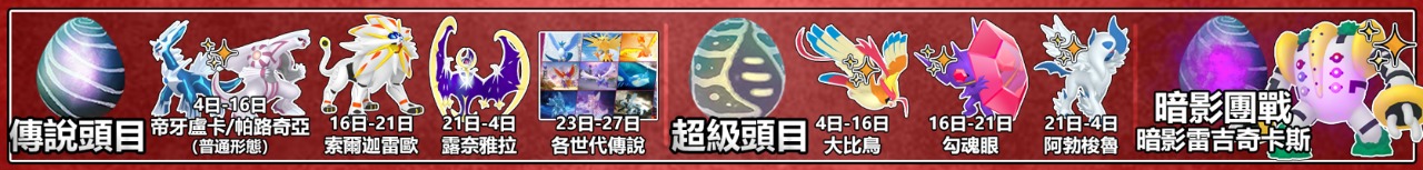 其餘日子還有關都三聖鳥、城都的暗影洛奇亞和鳳王,