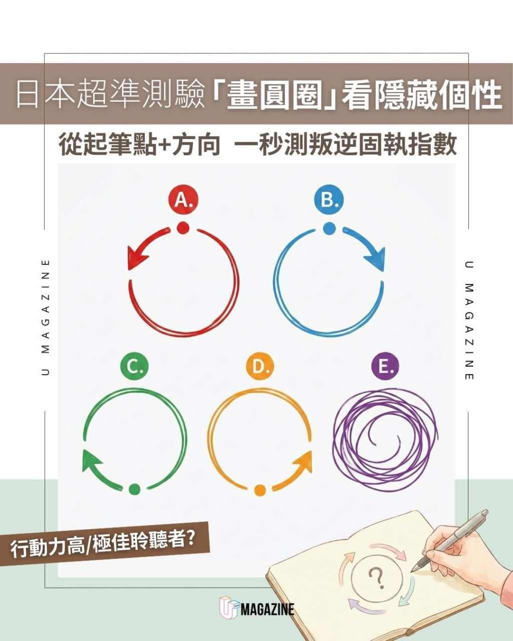 日本超夯心理測驗指出,只要觀察你畫圈圈的「起筆點+方向」,就能快速看出你的個性傾向、固執程度,甚至戀愛模式!