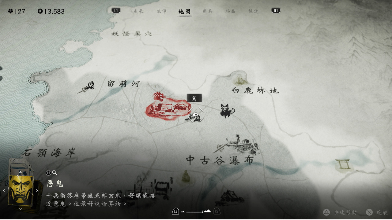不死者之鎧我們一樣要找說書人去開啟,來到左上方的石狩平原,也就是羊蹄平原的下一張,我們在這個位置可以找到說書人說有個傳說強者穿著不死者之鎧,故事細節就自己看吧,我們可以去送他一程並獲取鎧甲。