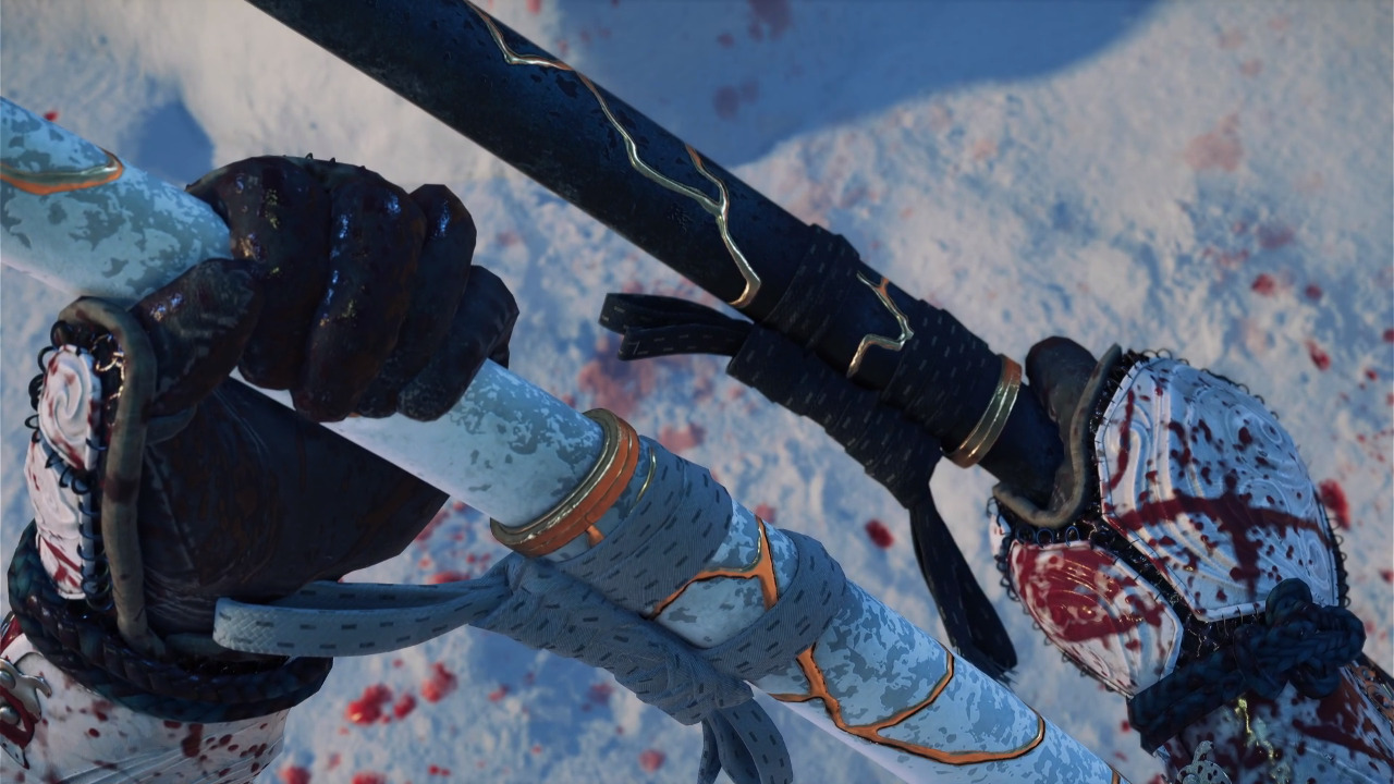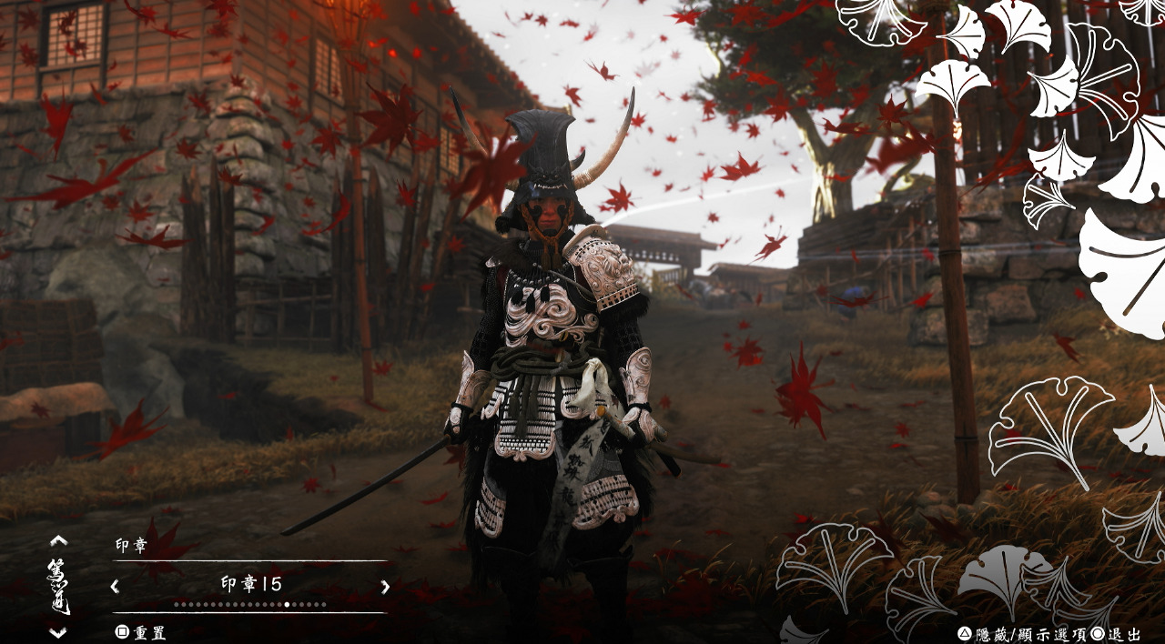 打贏之後我們會把武藏埋在羊蹄山上,並得到他的斗笠跟黑白雙刀,白色那把配色就跟PS5羊蹄山限定版一樣的設計,可能換上去就不會想拿下來了,如果想讓兩把刀呈現不一樣顏色,那就單刀設定白色,雙刀設定黑色,反之亦然,外觀就會同時攜帶黑白雙刀。