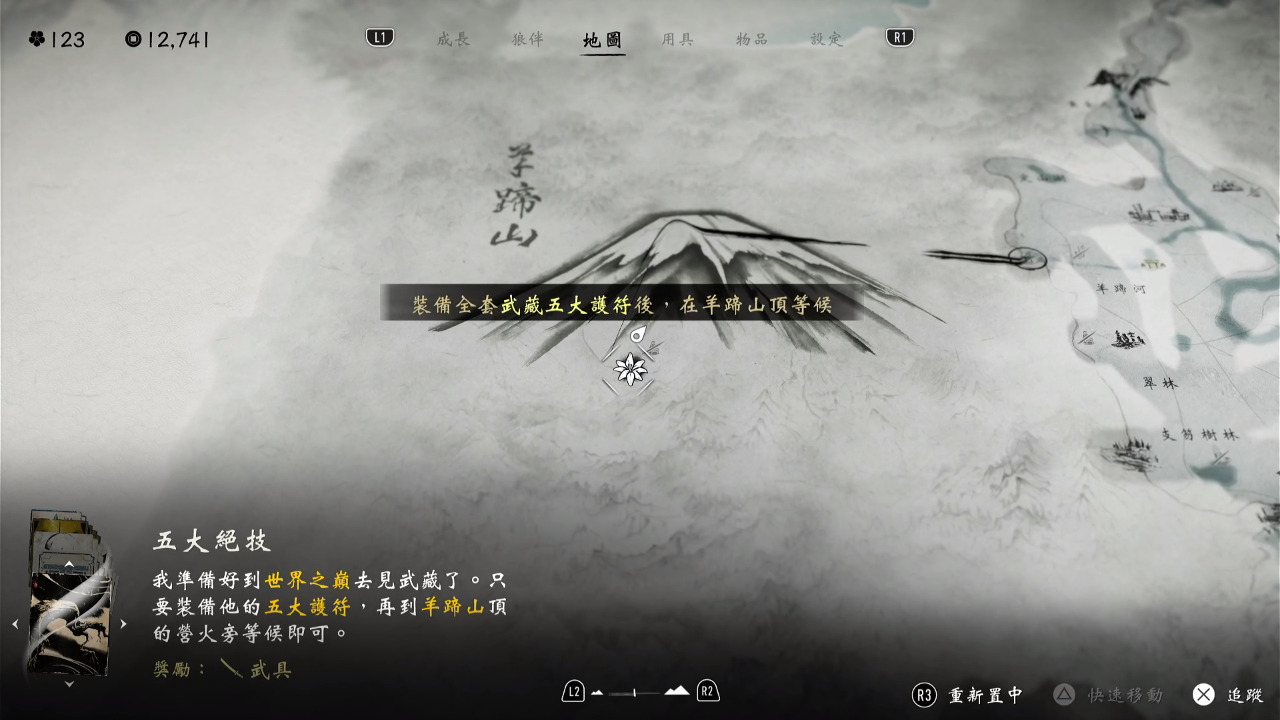 回到我們羊蹄山的靜思祭壇,如果你沒開過那個點,記得在羊蹄山右邊會有一個神社的標記,照著路往上就可以開啟神社拿到技能點,而中間火山口是一個靜思祭壇,打開後以後都可以傳回來,然後裝備五個剛獲取的武藏護符,跟懸崖邊的篝火互動就可以等到武藏過來,觸發完劇情後會有空檔讓你喚回你希望裝的護符,最後這個武藏非常非常難打,對於這種傳說武士我們要智取不能蠻幹,首先你需要打開系統設定,把難度調到最簡單www,但這樣還不足以讓你取勝,你還是有可能被幹掉,第二是要以單刀彈反為去消耗武藏的破定值,如果你單刀有圈+三角形的技能可以打斷武藏的連招。