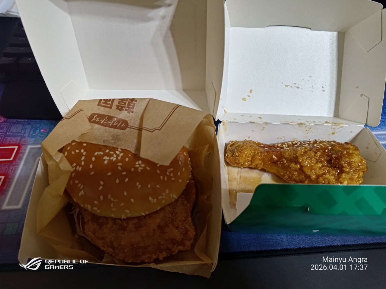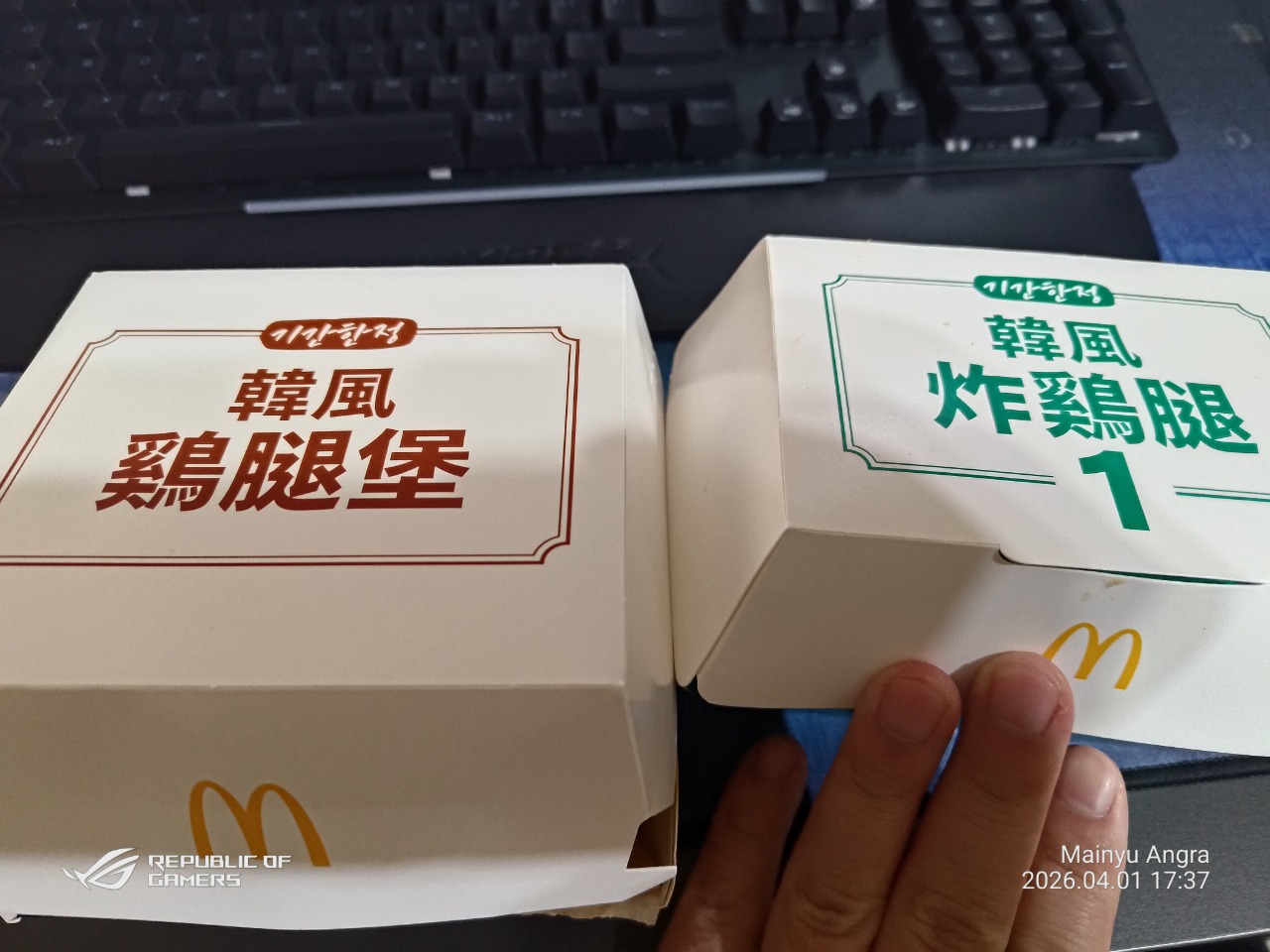 這次新漢堡又讓我來嚐鮮了,還沒打開就有濃濃蒜香,但醬汁太多導致漢堡整顆潮濕、醬汁洩漏讓整個手掌黏糊糊的根本災難!