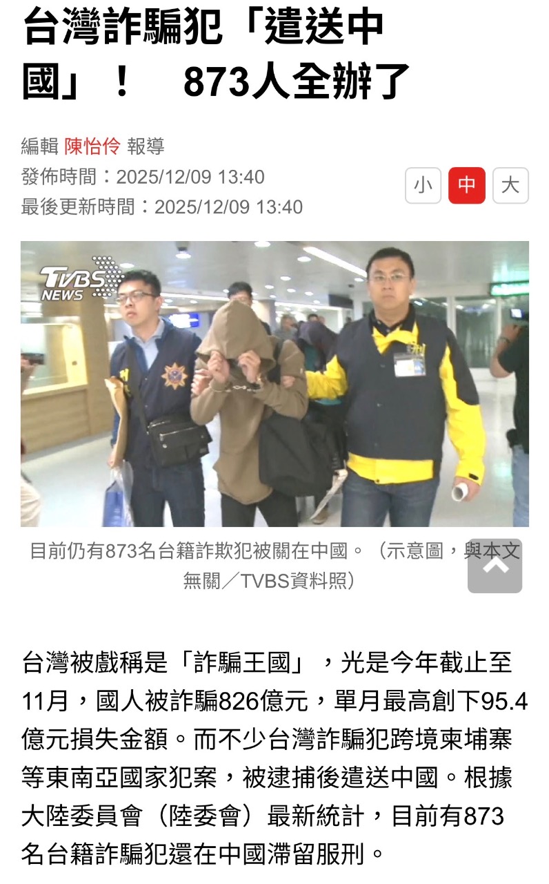 事實上,不少台灣詐騙犯在東南亞國家犯罪,被逮捕後遣送中國辦理。柬埔寨今年3月在金邊詐騙園區,成功破獲電信詐騙集團,共逮捕186人,其中179名是台灣人,7名為中國人,卻全數送往中國受審。