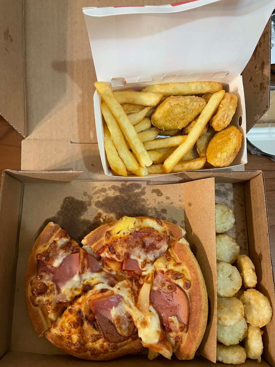 我最愛吃夏威夷口味的,這次也有配雞塊薯條還有薯星星,超級享受!