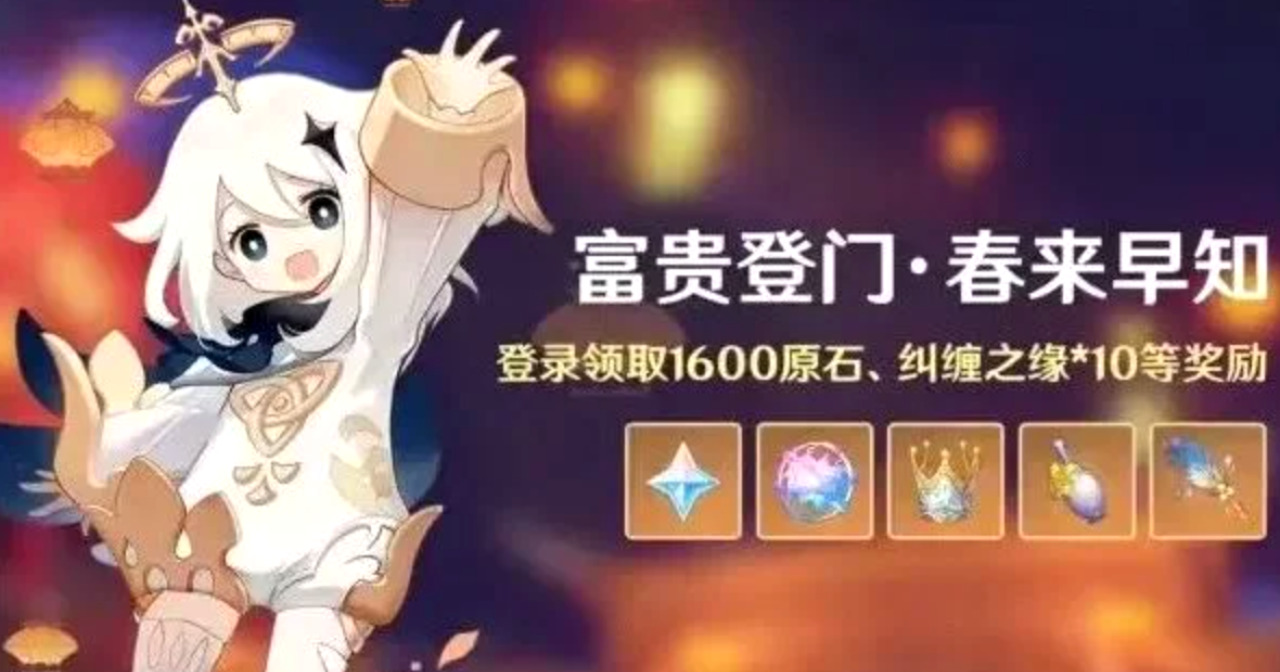 在版本活动方面,【富贵登门·春来早知】迎春主题活动正式上线。玩家只需每日登录游戏,就能累计领取10个纠缠之缘,还有摩拉、经验书等实用道具,登录天数越多,收获的奖励也就越丰厚。