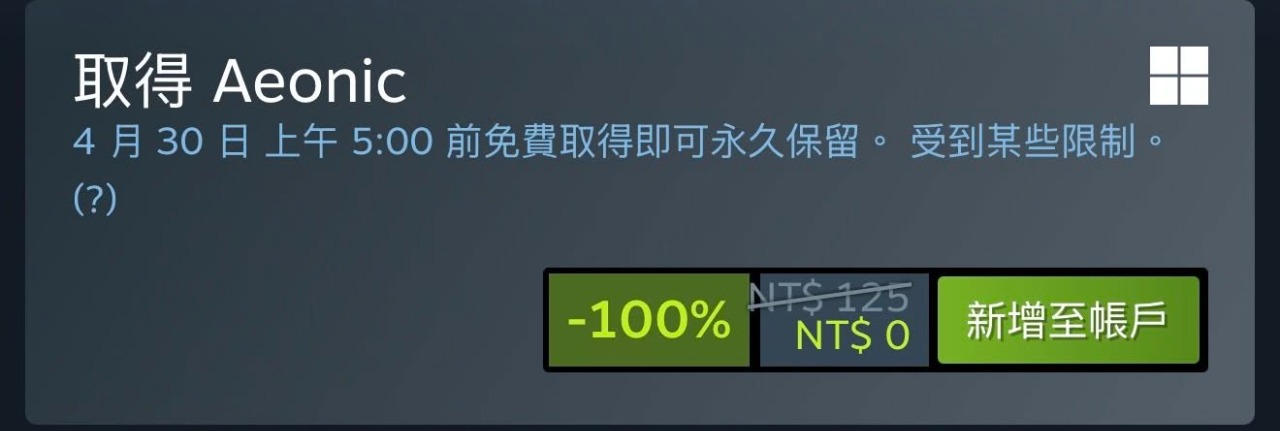 【Steam限時免費遊戲】4 月 30 日 上午 5:00 前都能領Aeonic