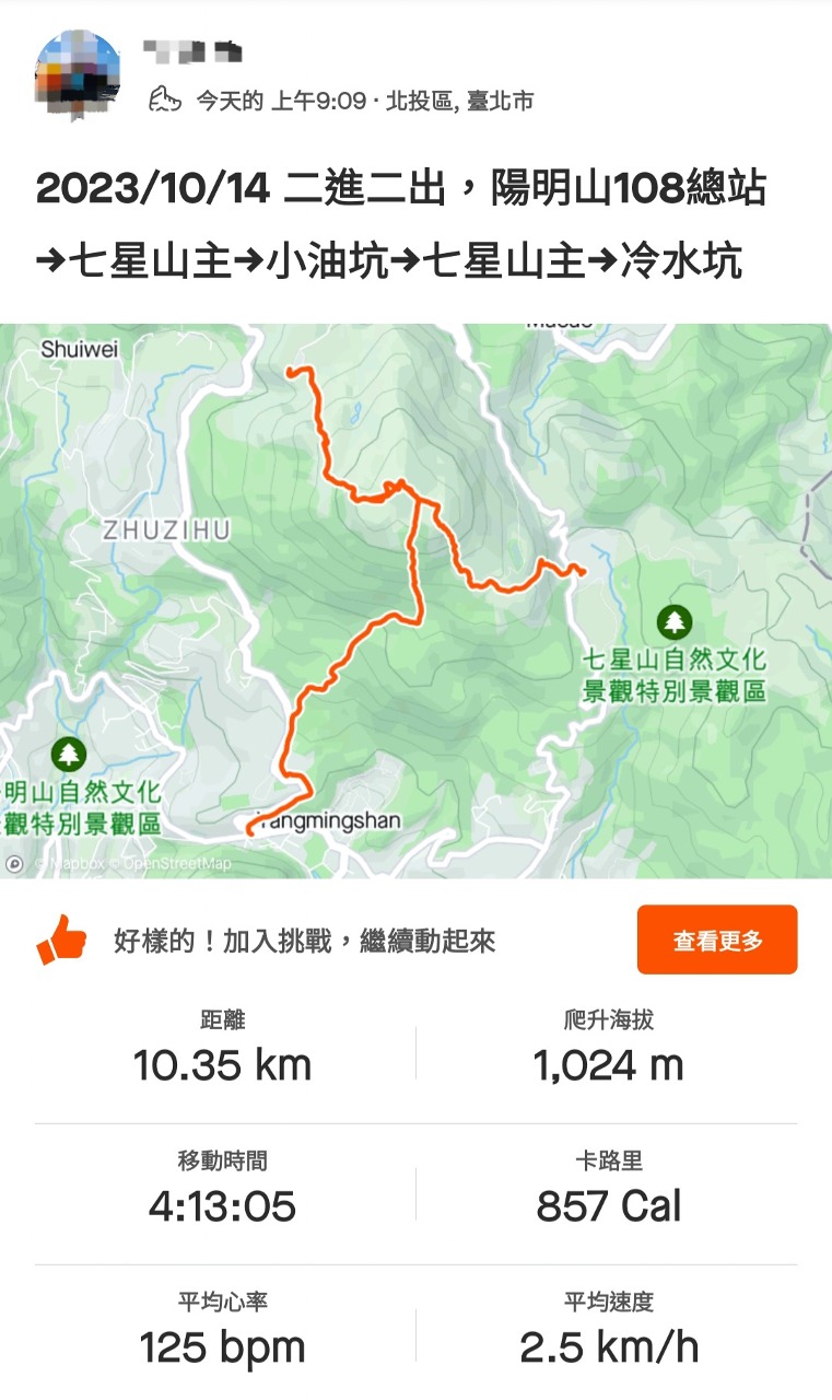 註:三進三出活動某FB活動產生的,從三個登七星山登山口,一進一出為一趟完成,三趟走下來挺硬的,沒練過,體能差的不要玩🤣